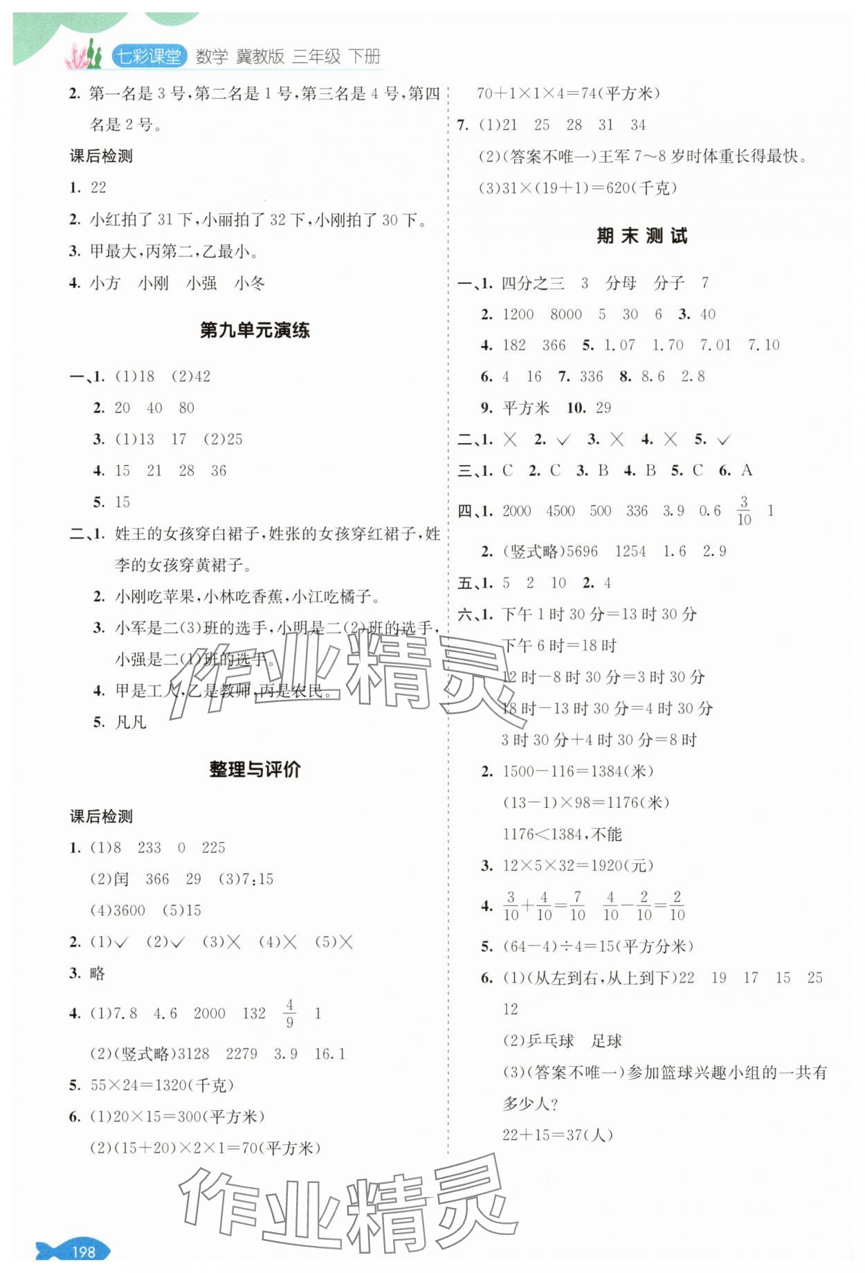 注:目前有些书本章节名称可能整理的还不是很完善,但都是按照顺序排列的,请同学们按照顺序仔细查找。练习册 2025年七彩课堂三年级数学下册冀教版 答案主要是用来给同学们做完题方便对答案用的,请勿直接抄袭。