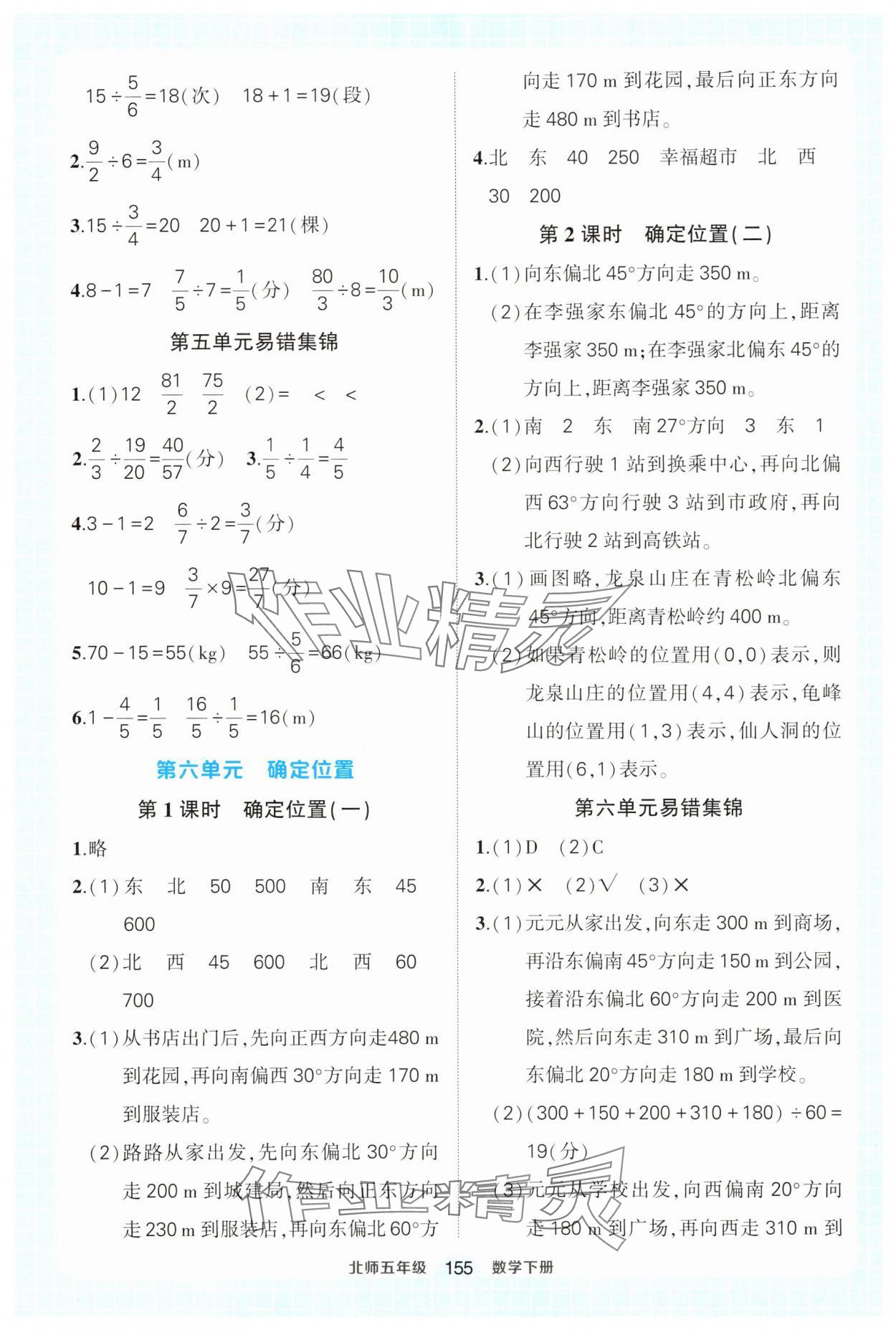 注:目前有些书本章节名称可能整理的还不是很完善,但都是按照顺序排列的,请同学们按照顺序仔细查找。练习册 2025年黄冈状元成才路状元作业本五年级数学下册北师大版 答案主要是用来给同学们做完题方便对答案用的,请勿直接抄袭。