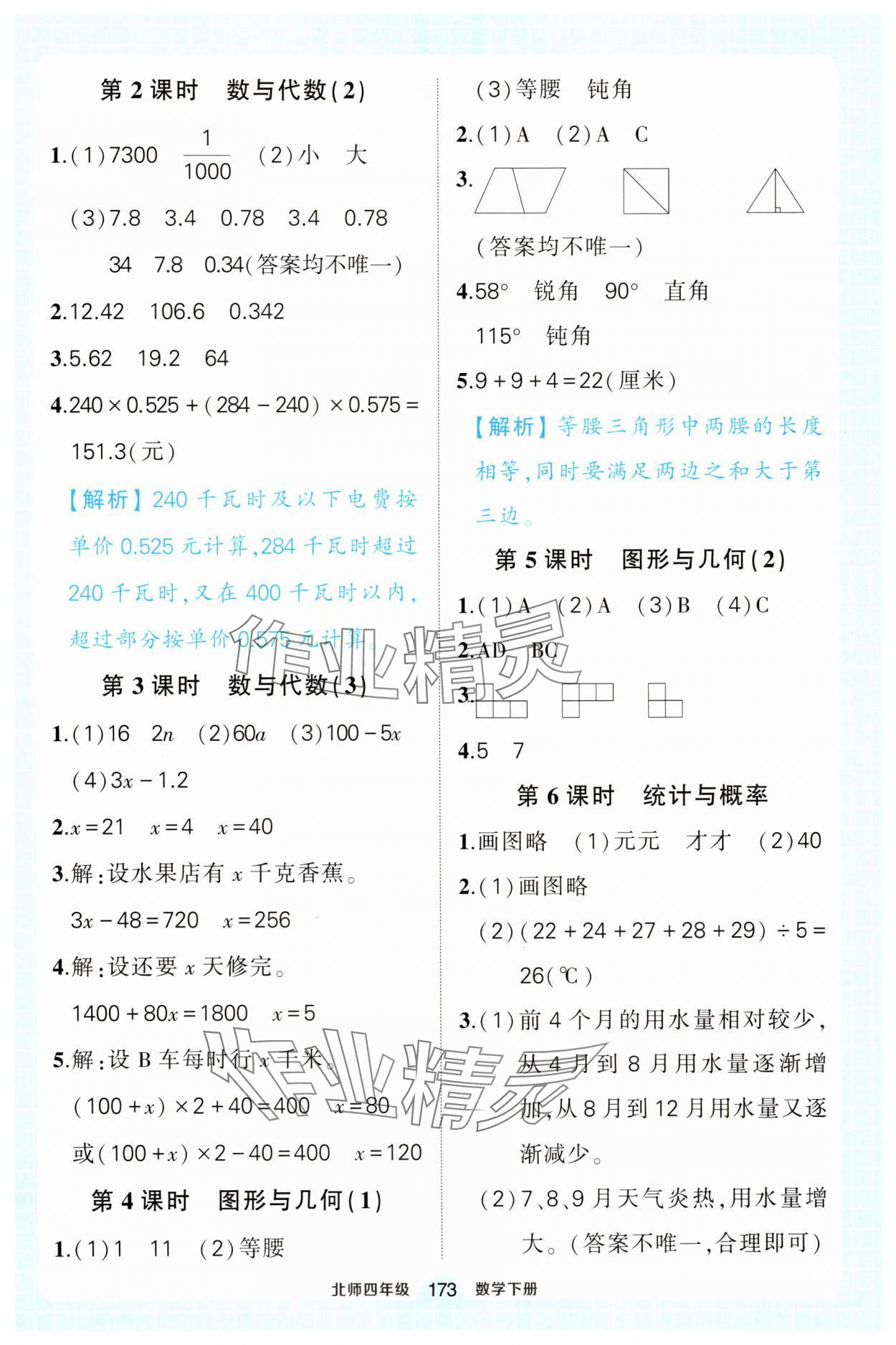 注:目前有些书本章节名称可能整理的还不是很完善,但都是按照顺序排列的,请同学们按照顺序仔细查找。练习册 2025年黄冈状元成才路状元作业本四年级数学下册北师大版 答案主要是用来给同学们做完题方便对答案用的,请勿直接抄袭。