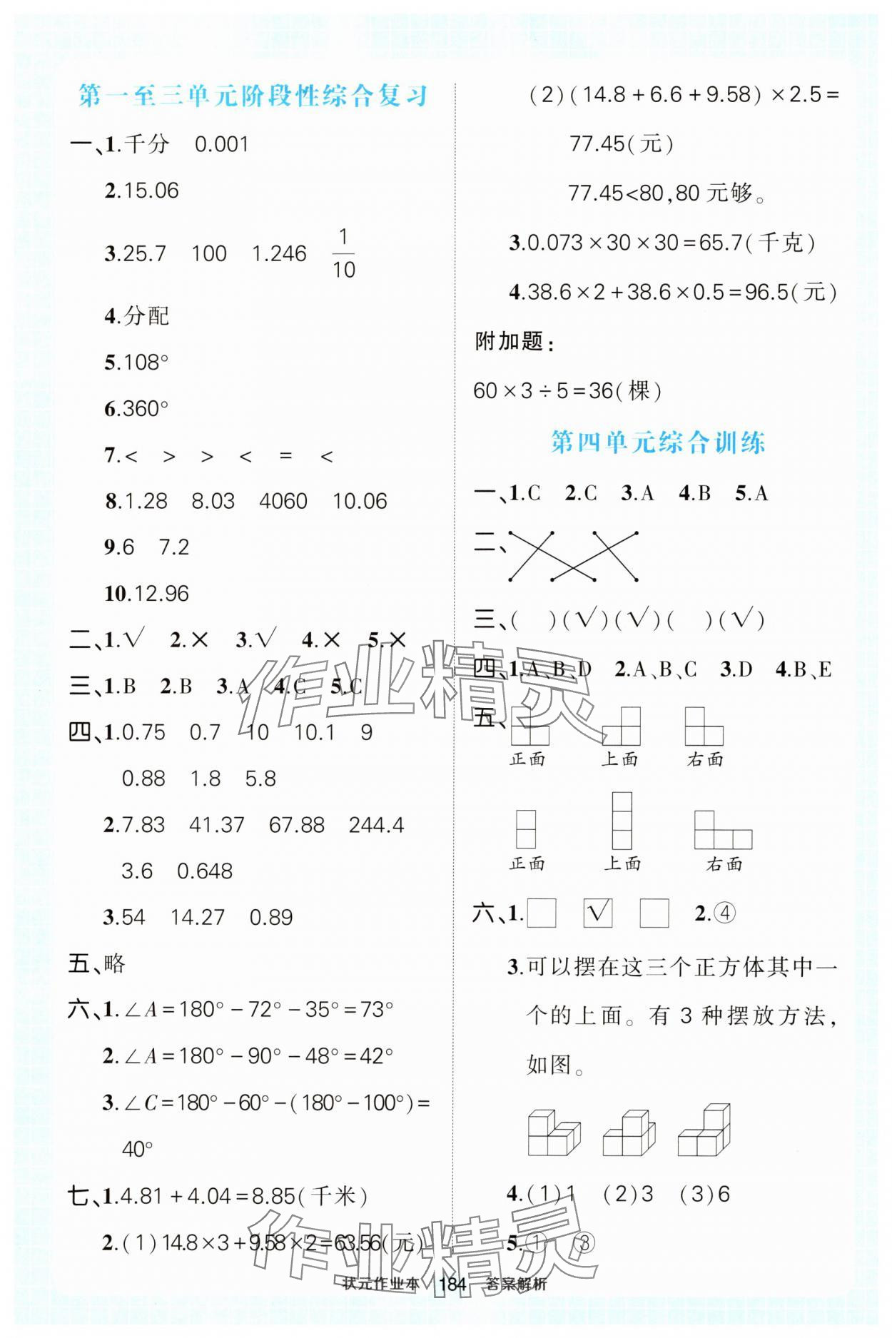 注:目前有些书本章节名称可能整理的还不是很完善,但都是按照顺序排列的,请同学们按照顺序仔细查找。练习册 2025年黄冈状元成才路状元作业本四年级数学下册北师大版 答案主要是用来给同学们做完题方便对答案用的,请勿直接抄袭。