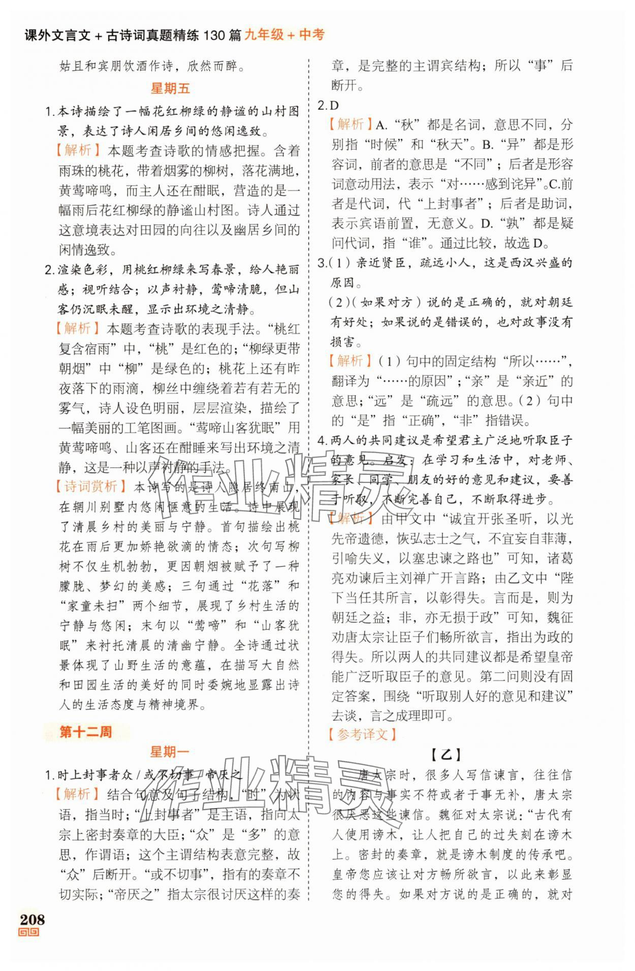 2025年课外文言文加古诗词真题精练130篇九年级+中考