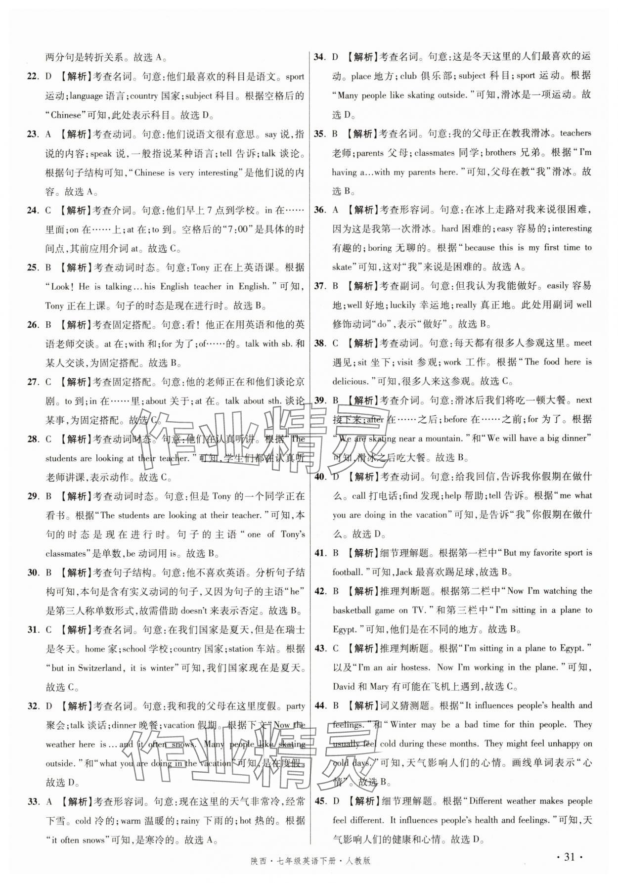 2025年初中毕业升学真题详解七年级英语下册人教版陕西专版