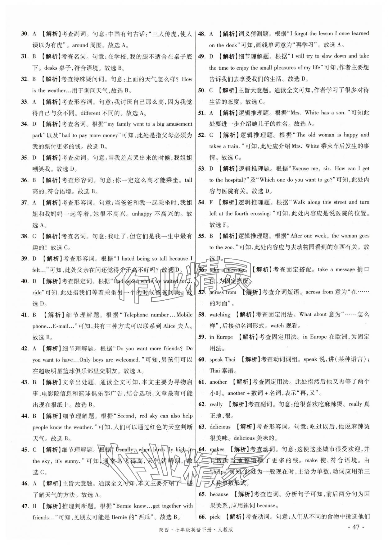 2025年初中毕业升学真题详解七年级英语下册人教版陕西专版