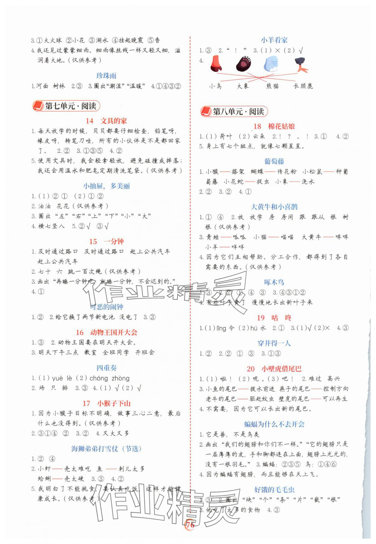 注:目前有些书本章节名称可能整理的还不是很完善,但都是按照顺序排列的,请同学们按照顺序仔细查找。练习册 2025年阅读理解专项训练一年级语文下册人教版 答案主要是用来给同学们做完题方便对答案用的,请勿直接抄袭。