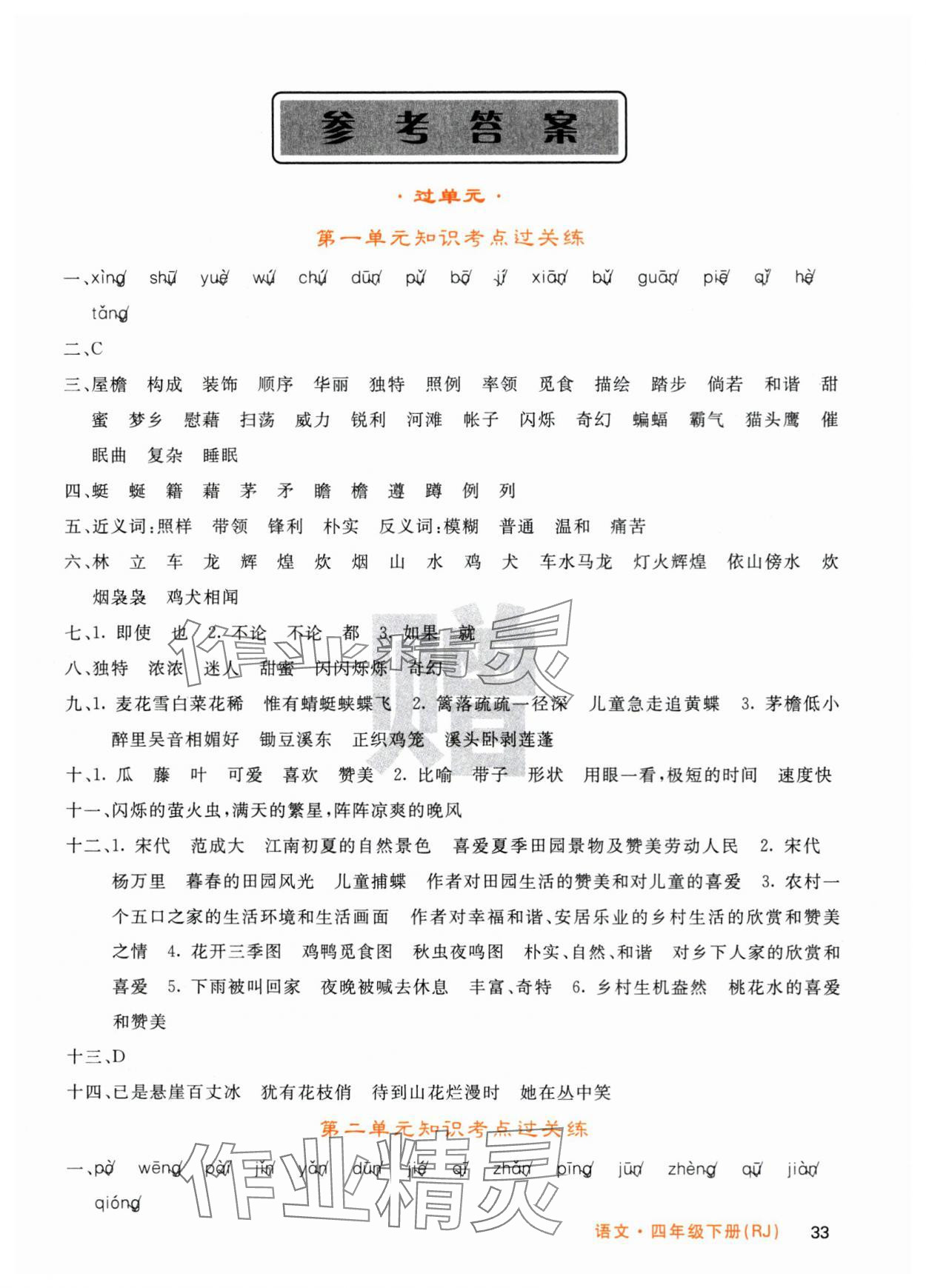 注:目前有些书本章节名称可能整理的还不是很完善,但都是按照顺序排列的,请同学们按照顺序仔细查找。练习册 2025年课堂点睛四年级语文下册人教版湖北专版 答案主要是用来给同学们做完题方便对答案用的,请勿直接抄袭。