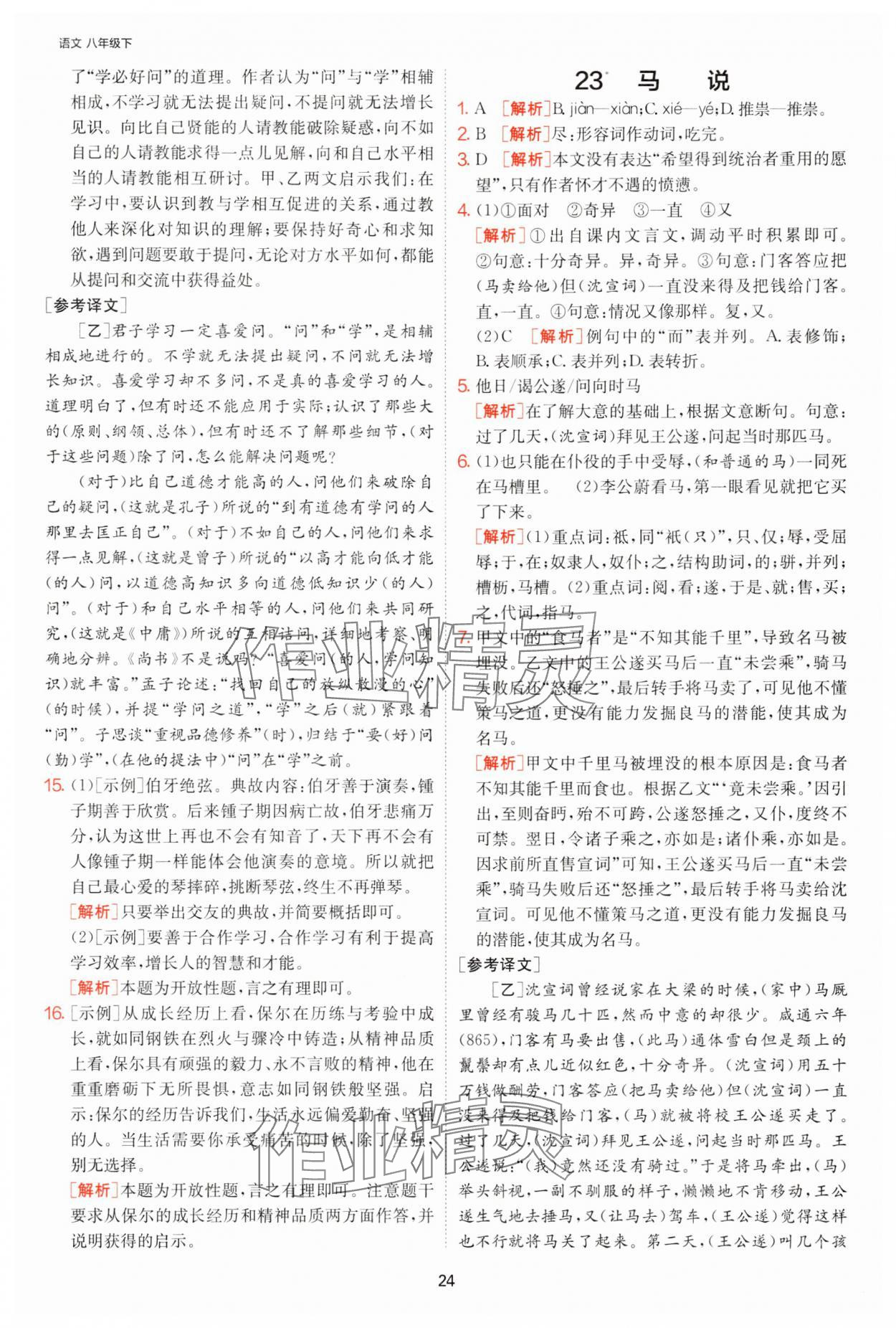 注:目前有些书本章节名称可能整理的还不是很完善,但都是按照顺序排列的,请同学们按照顺序仔细查找。练习册 2025年课时训练江苏人民出版社八年级语文下册人教版提优版 答案主要是用来给同学们做完题方便对答案用的,请勿直接抄袭。