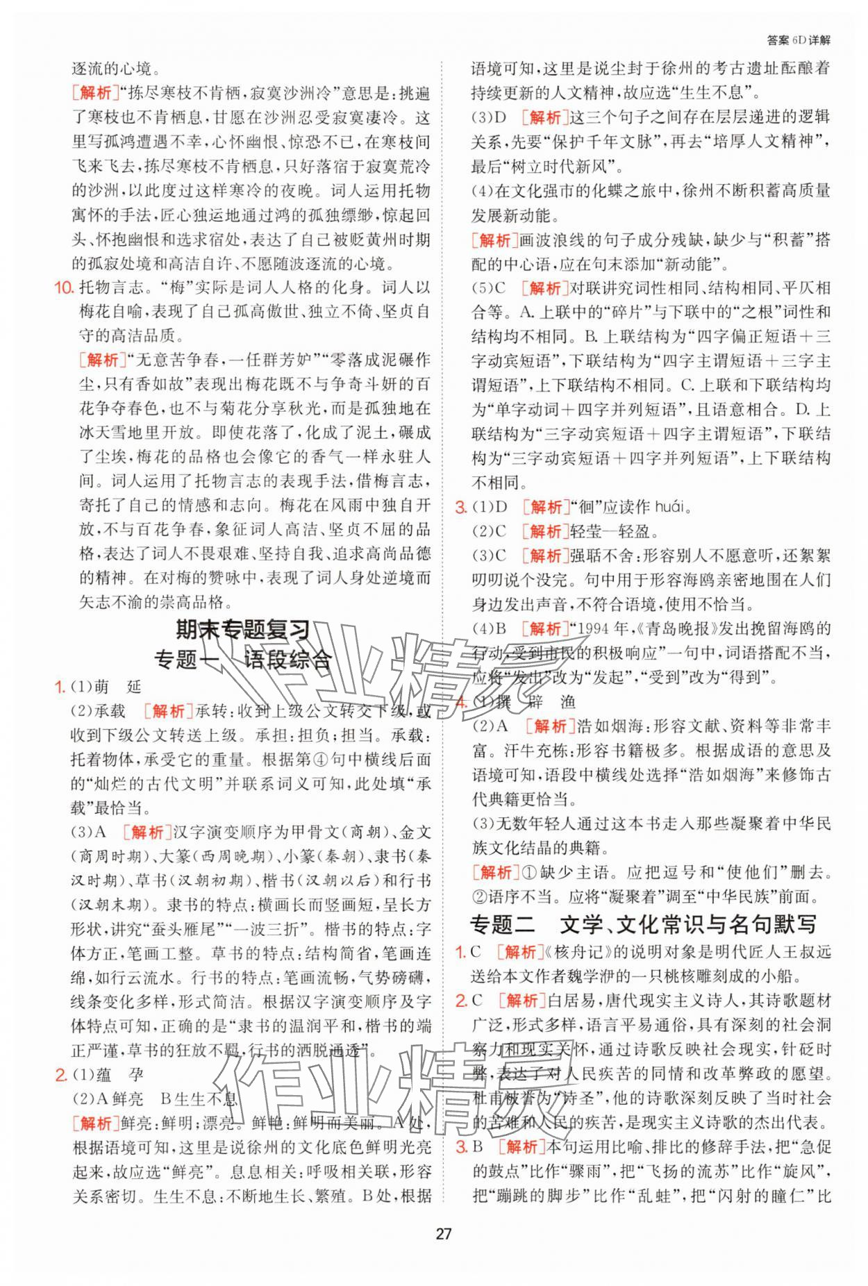 注:目前有些书本章节名称可能整理的还不是很完善,但都是按照顺序排列的,请同学们按照顺序仔细查找。练习册 2025年课时训练江苏人民出版社八年级语文下册人教版提优版 答案主要是用来给同学们做完题方便对答案用的,请勿直接抄袭。