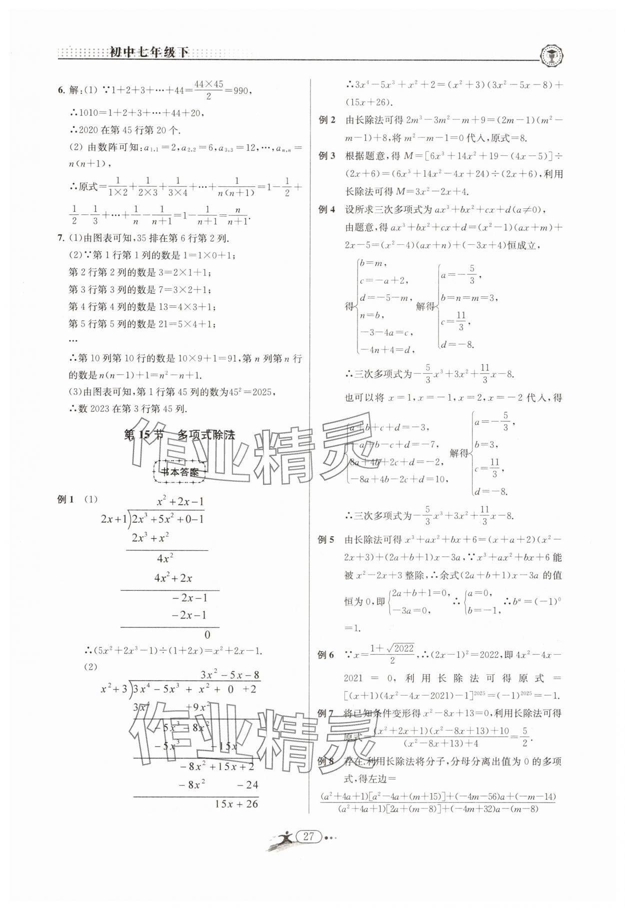 注:目前有些书本章节名称可能整理的还不是很完善,但都是按照顺序排列的,请同学们按照顺序仔细查找。练习册 2025年非凡数学七年级下册浙教版 答案主要是用来给同学们做完题方便对答案用的,请勿直接抄袭。