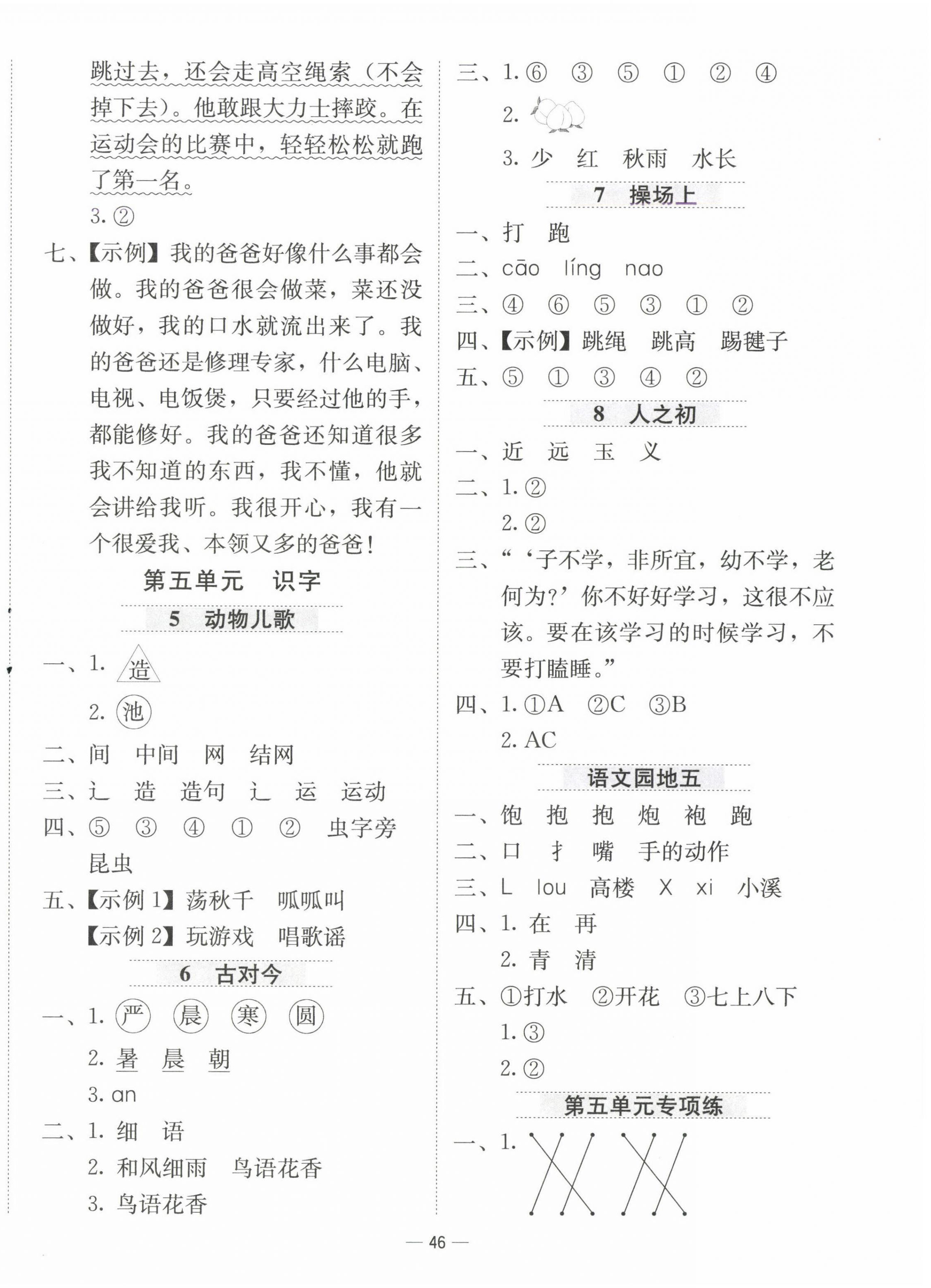 注:目前有些书本章节名称可能整理的还不是很完善,但都是按照顺序排列的,请同学们按照顺序仔细查找。练习册 2025年新课标同步学练测一年级语文下册人教版 答案主要是用来给同学们做完题方便对答案用的,请勿直接抄袭。