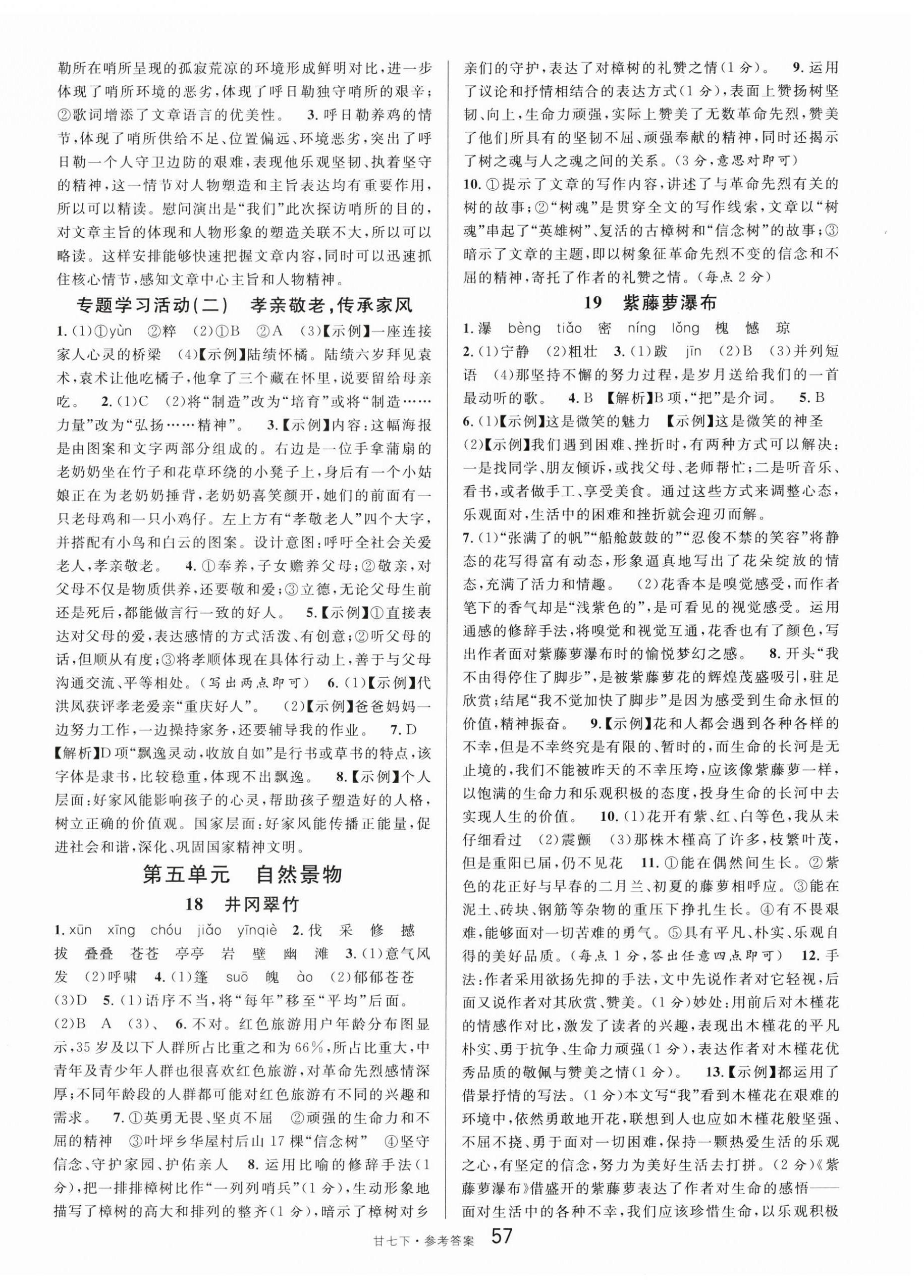注:目前有些书本章节名称可能整理的还不是很完善,但都是按照顺序排列的,请同学们按照顺序仔细查找。练习册 2025年名校课堂七年级语文下册人教版甘肃专版 答案主要是用来给同学们做完题方便对答案用的,请勿直接抄袭。