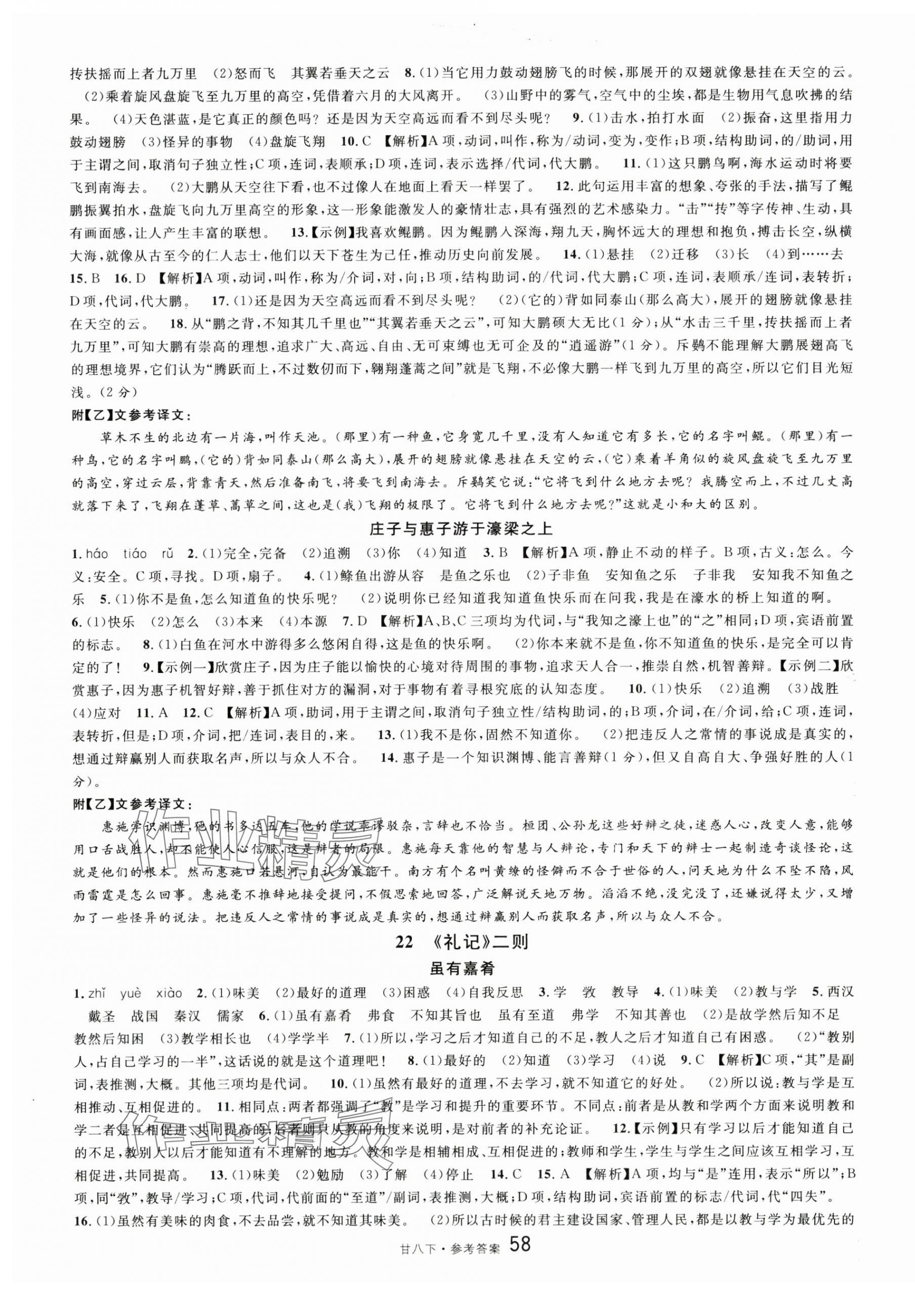 注:目前有些书本章节名称可能整理的还不是很完善,但都是按照顺序排列的,请同学们按照顺序仔细查找。练习册 2025年名校课堂八年级语文下册人教版甘肃专版 答案主要是用来给同学们做完题方便对答案用的,请勿直接抄袭。