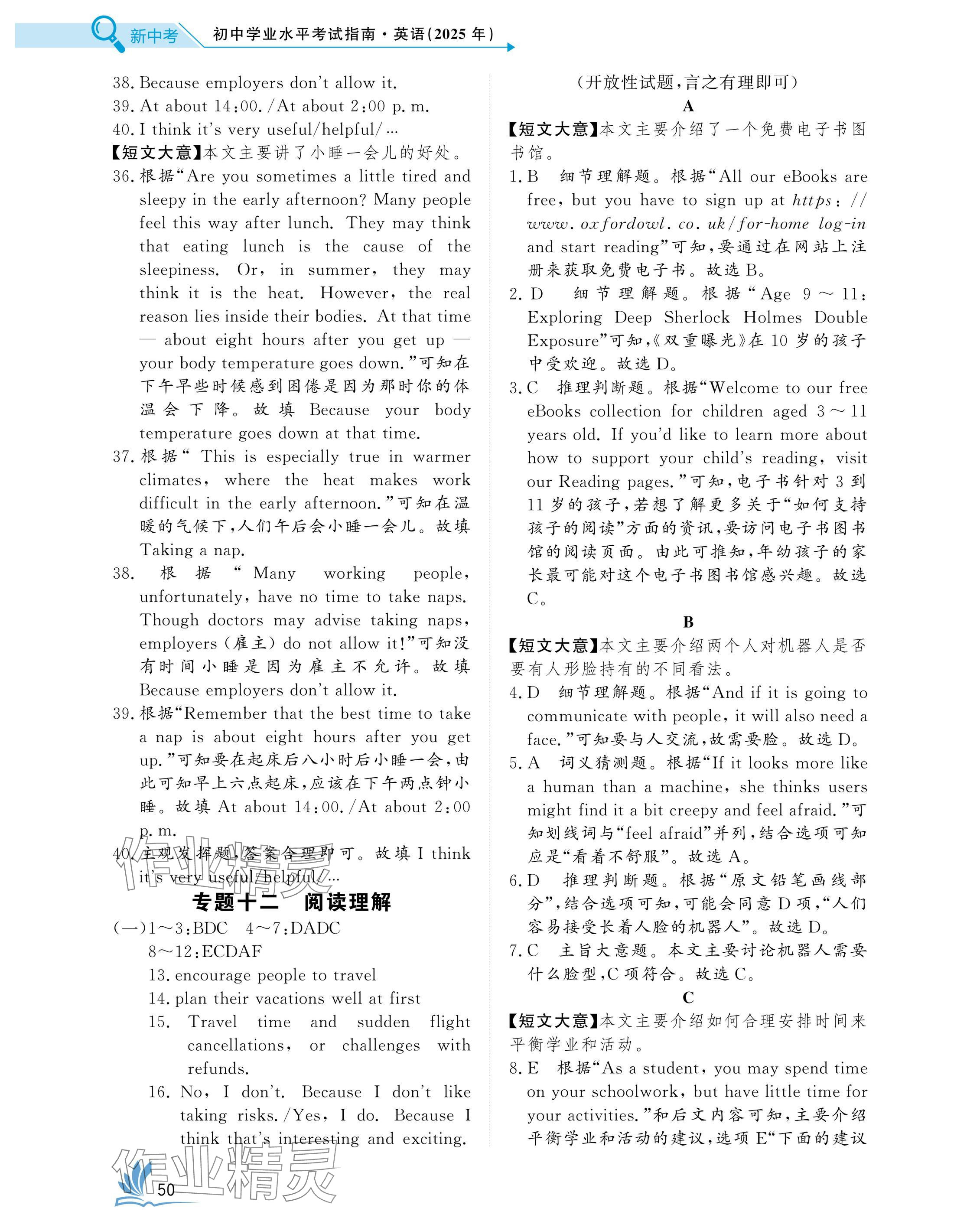 注:目前有些书本章节名称可能整理的还不是很完善,但都是按照顺序排列的,请同学们按照顺序仔细查找。练习册 2025年新中考英语中考人教版湖北专版 答案主要是用来给同学们做完题方便对答案用的,请勿直接抄袭。