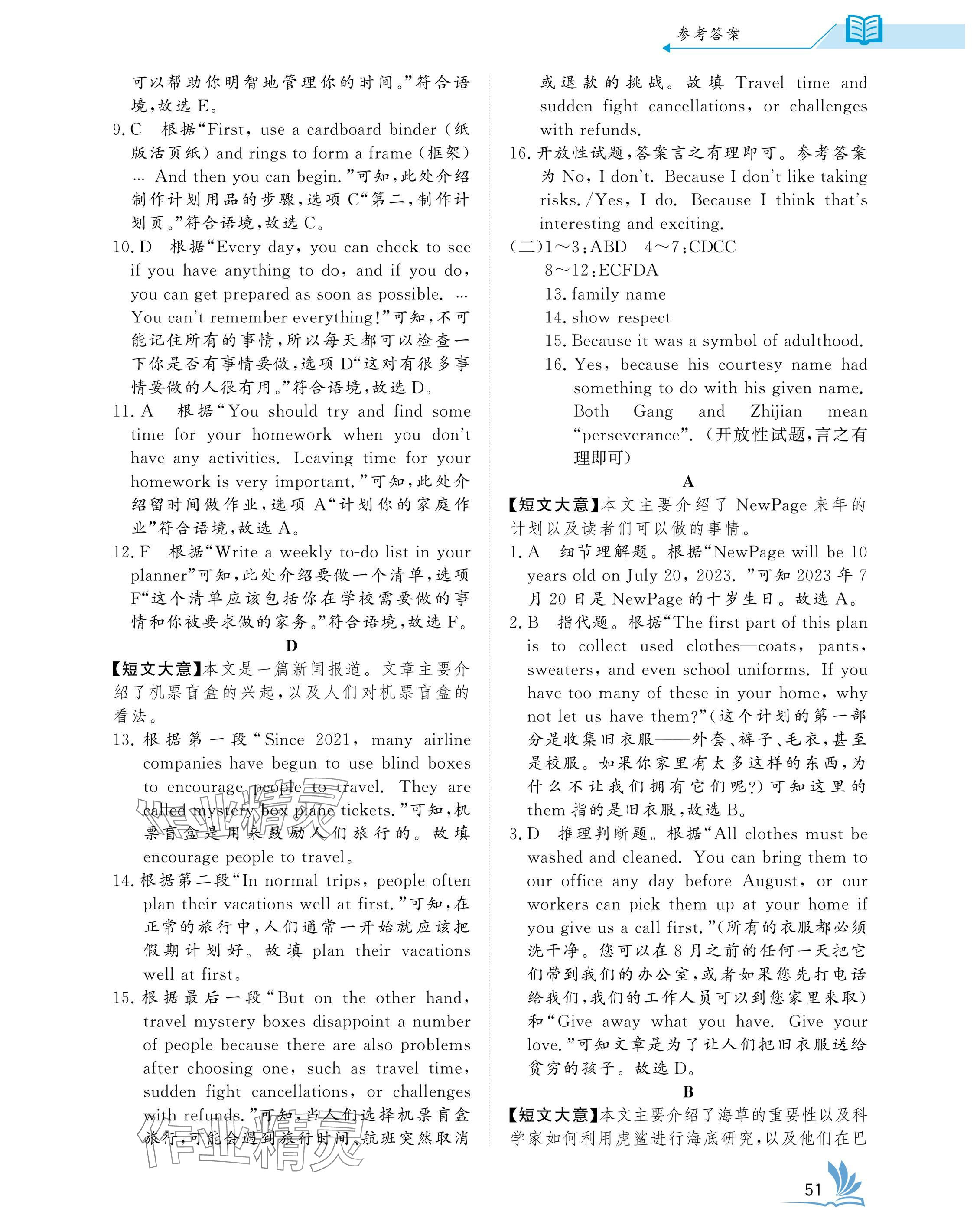 - 参考答案第51页