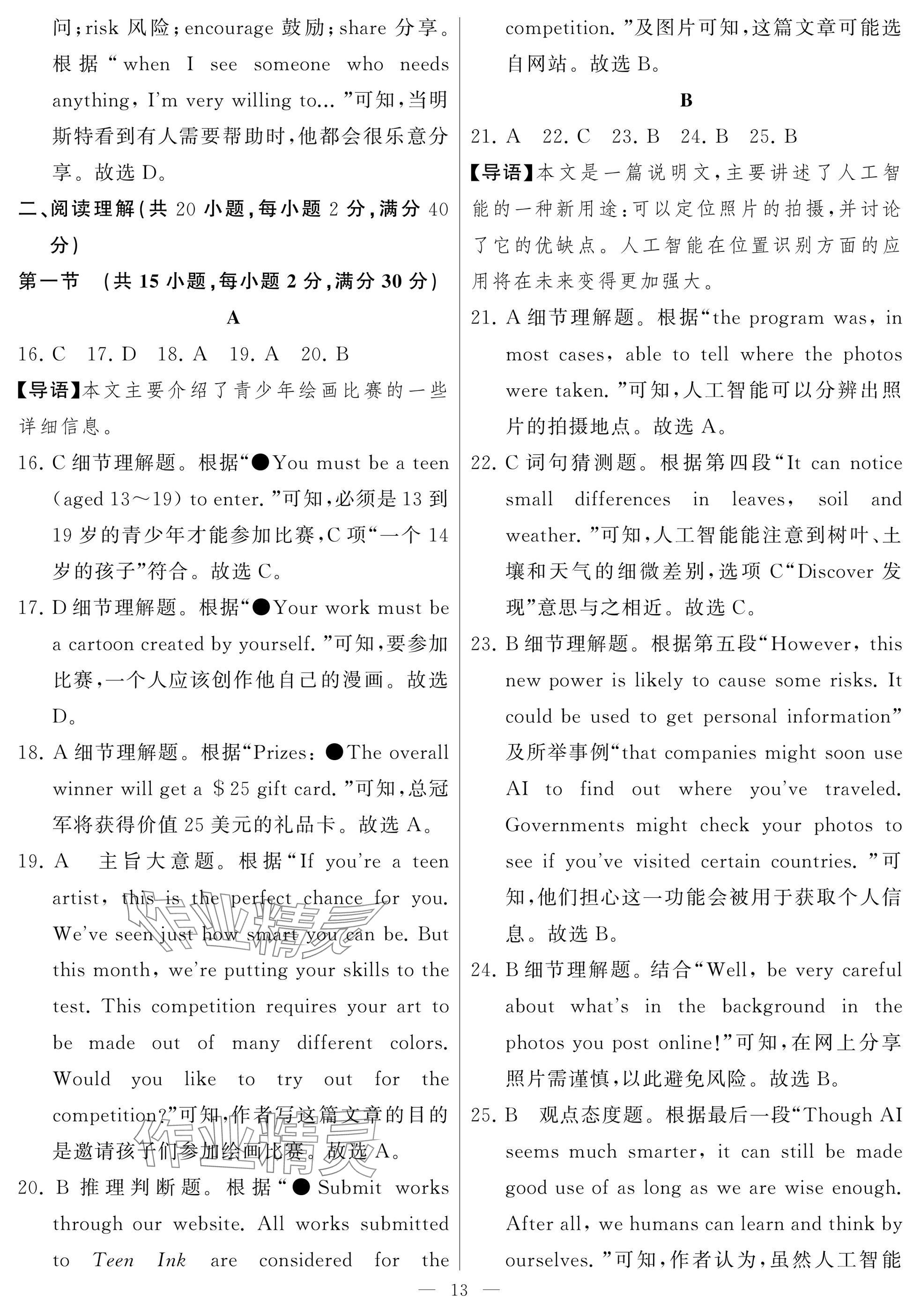 注:目前有些书本章节名称可能整理的还不是很完善,但都是按照顺序排列的,请同学们按照顺序仔细查找。练习册 2025年新中考英语中考人教版湖北专版 答案主要是用来给同学们做完题方便对答案用的,请勿直接抄袭。