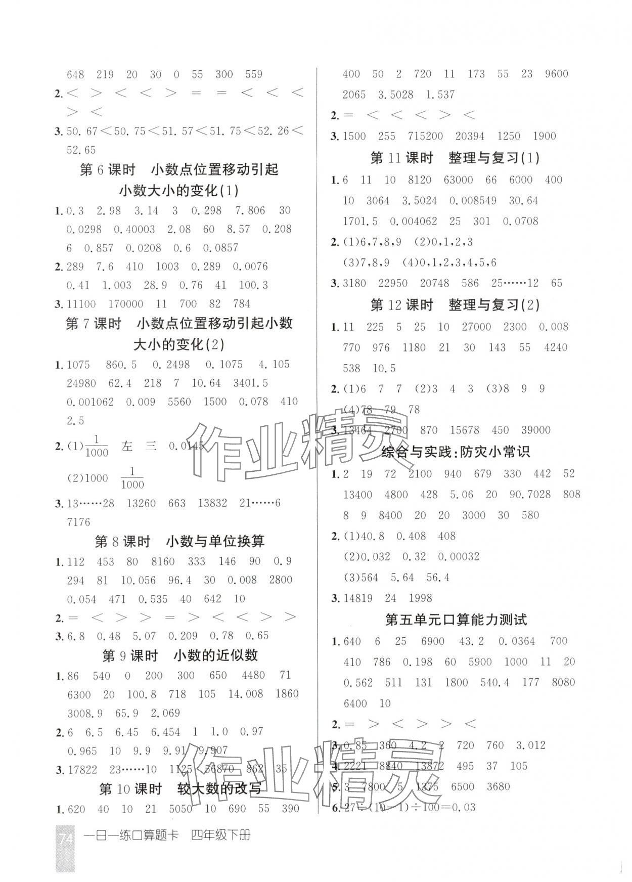 注:目前有些书本章节名称可能整理的还不是很完善,但都是按照顺序排列的,请同学们按照顺序仔细查找。练习册 2025年1日1练口算题卡四年级下册西师大版 答案主要是用来给同学们做完题方便对答案用的,请勿直接抄袭。