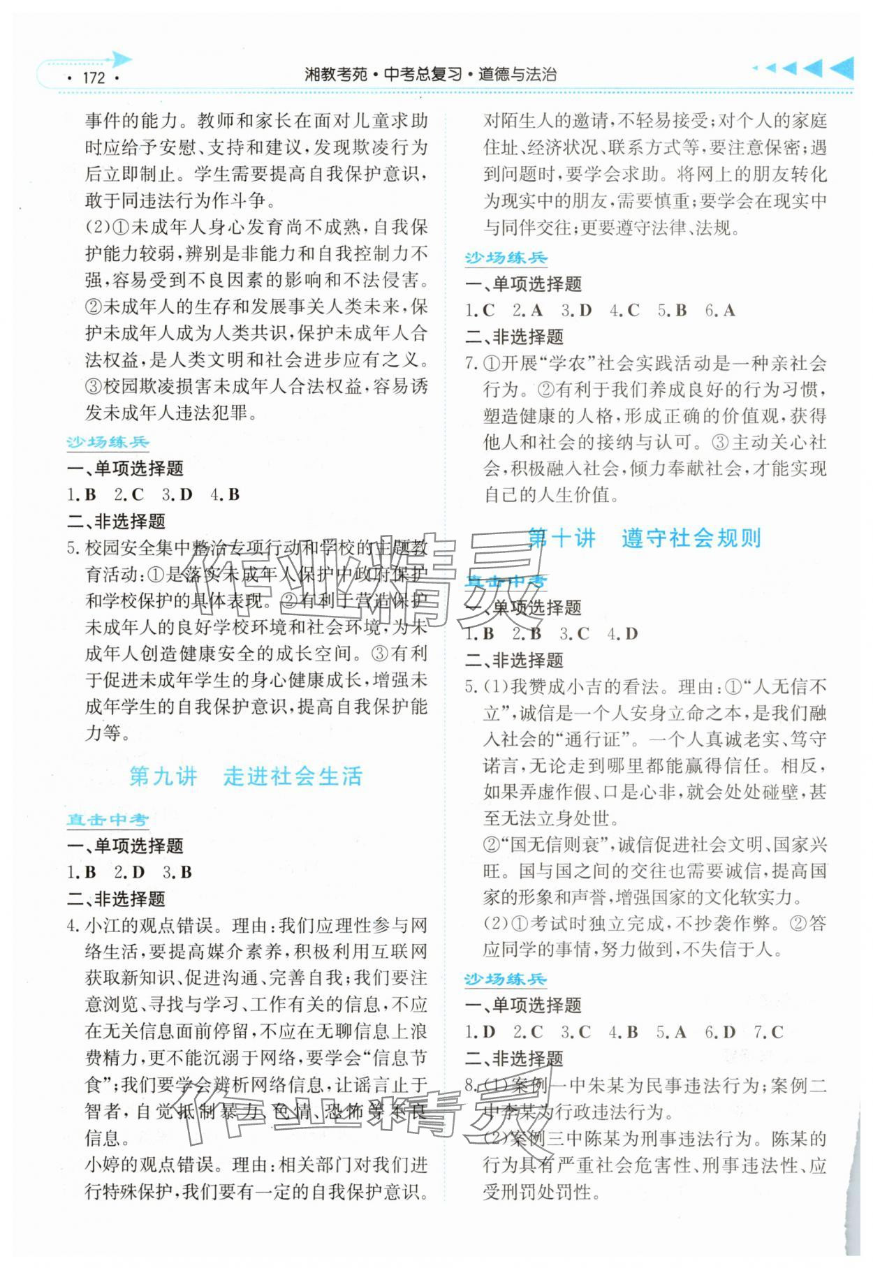 注:目前有些书本章节名称可能整理的还不是很完善,但都是按照顺序排列的,请同学们按照顺序仔细查找。练习册 2025年湘教考苑中考总复习道德与法治湘西版 答案主要是用来给同学们做完题方便对答案用的,请勿直接抄袭。
