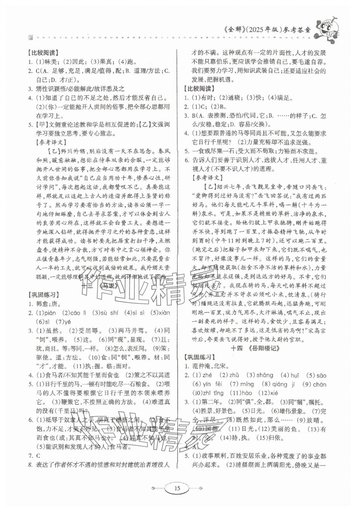 注:目前有些书本章节名称可能整理的还不是很完善,但都是按照顺序排列的,请同学们按照顺序仔细查找。练习册 2025年中考语文全解古诗文加名著语文 答案主要是用来给同学们做完题方便对答案用的,请勿直接抄袭。