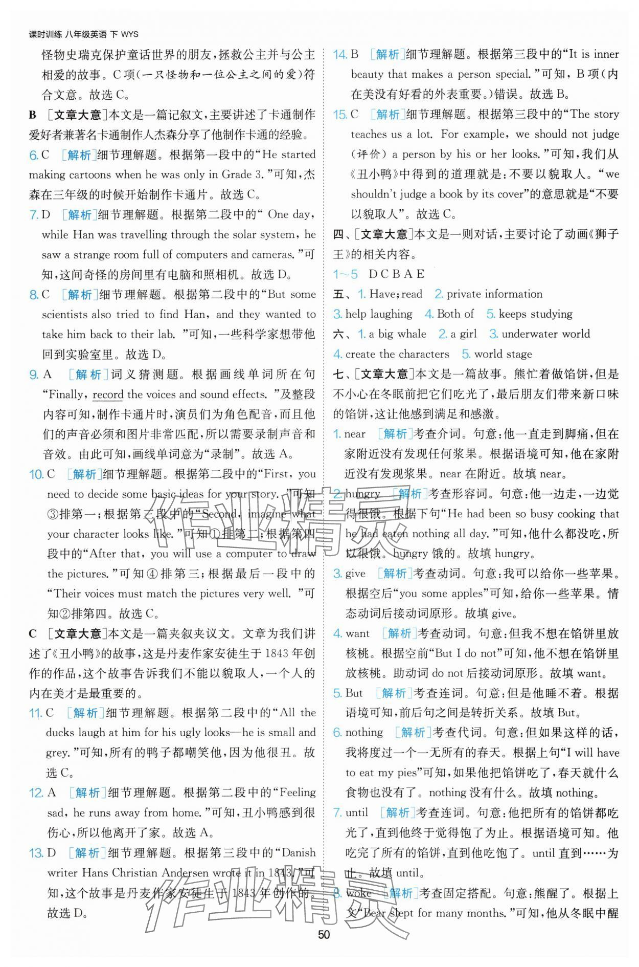 注:目前有些书本章节名称可能整理的还不是很完善,但都是按照顺序排列的,请同学们按照顺序仔细查找。练习册 2025年课时训练江苏人民出版社八年级英语下册人教版天津专版 答案主要是用来给同学们做完题方便对答案用的,请勿直接抄袭。