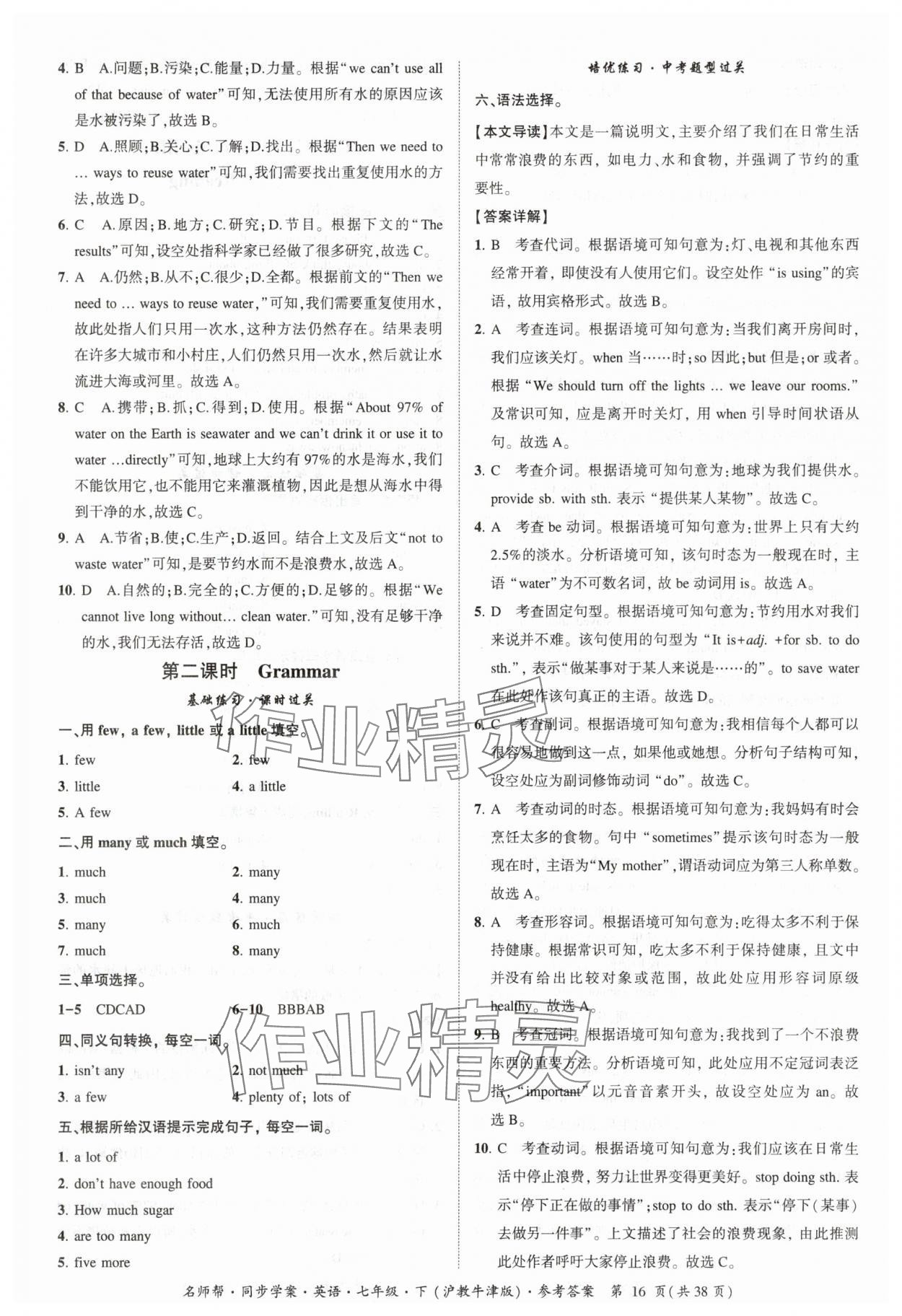 注:目前有些书本章节名称可能整理的还不是很完善,但都是按照顺序排列的,请同学们按照顺序仔细查找。练习册 2025年名师帮同步学案七年级英语下册沪教版广州专版 答案主要是用来给同学们做完题方便对答案用的,请勿直接抄袭。