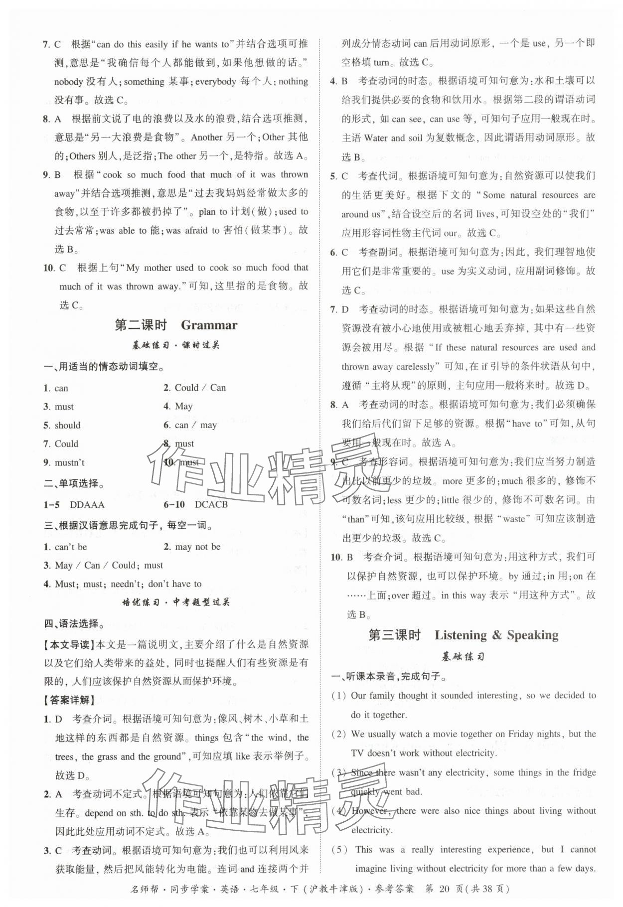 注:目前有些书本章节名称可能整理的还不是很完善,但都是按照顺序排列的,请同学们按照顺序仔细查找。练习册 2025年名师帮同步学案七年级英语下册沪教版广州专版 答案主要是用来给同学们做完题方便对答案用的,请勿直接抄袭。