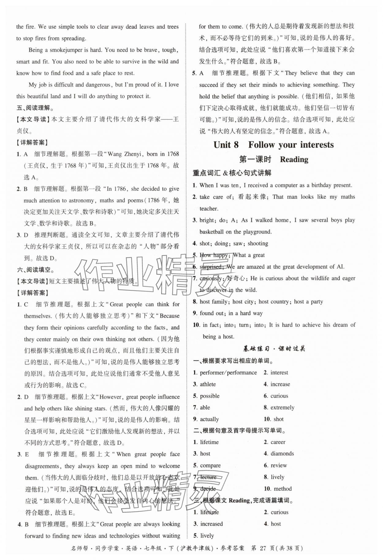 注:目前有些书本章节名称可能整理的还不是很完善,但都是按照顺序排列的,请同学们按照顺序仔细查找。练习册 2025年名师帮同步学案七年级英语下册沪教版广州专版 答案主要是用来给同学们做完题方便对答案用的,请勿直接抄袭。