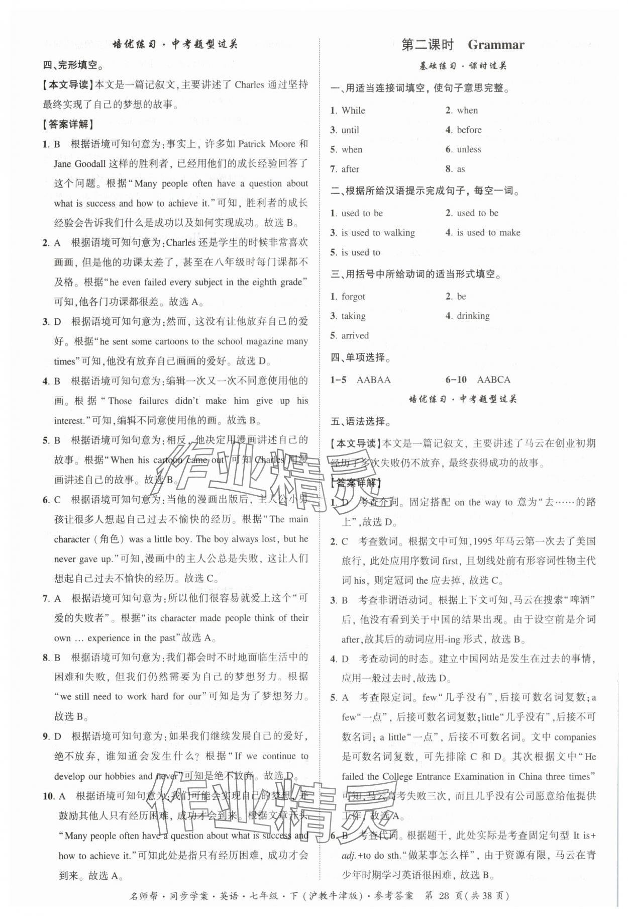 注:目前有些书本章节名称可能整理的还不是很完善,但都是按照顺序排列的,请同学们按照顺序仔细查找。练习册 2025年名师帮同步学案七年级英语下册沪教版广州专版 答案主要是用来给同学们做完题方便对答案用的,请勿直接抄袭。