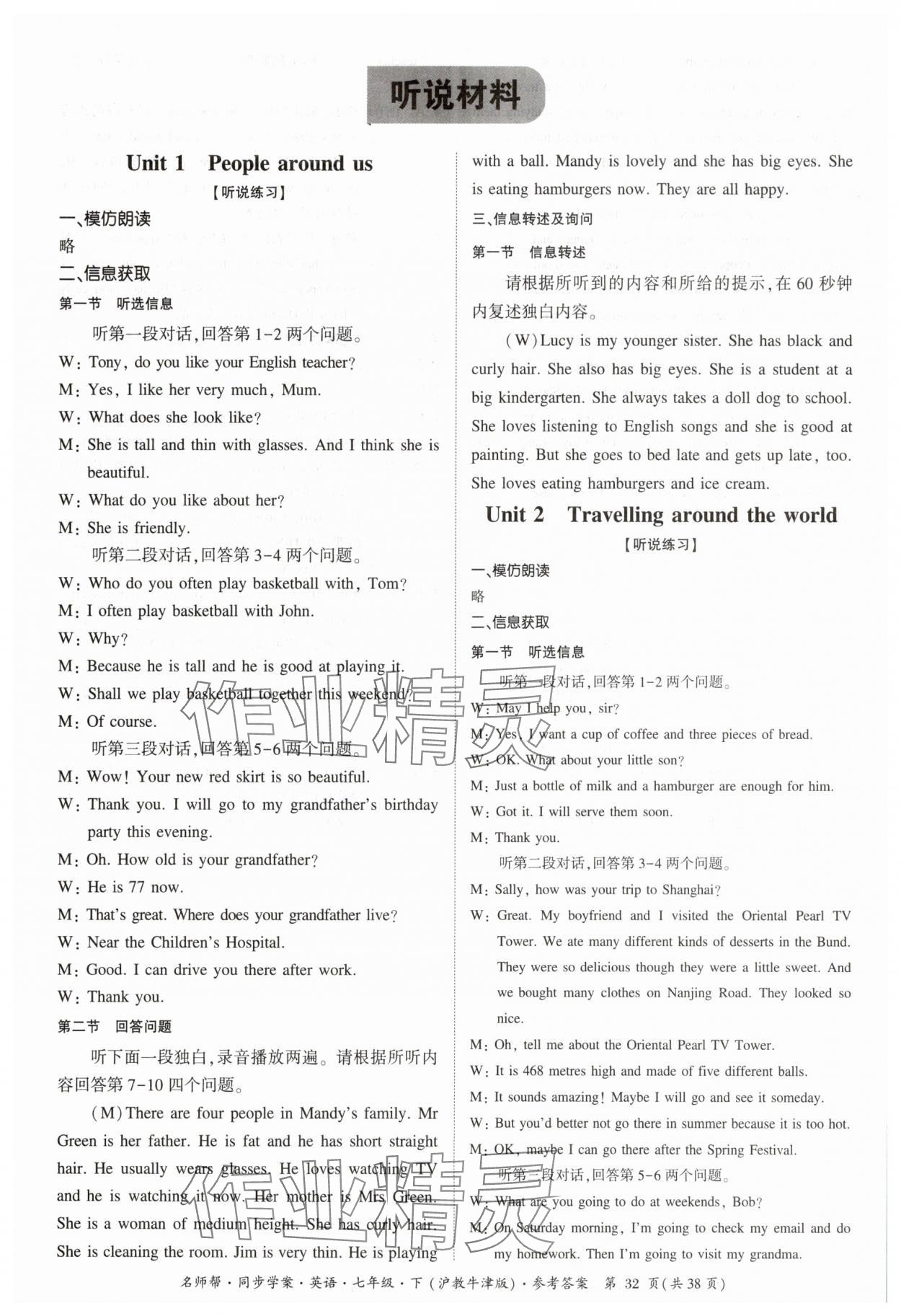 注:目前有些书本章节名称可能整理的还不是很完善,但都是按照顺序排列的,请同学们按照顺序仔细查找。练习册 2025年名师帮同步学案七年级英语下册沪教版广州专版 答案主要是用来给同学们做完题方便对答案用的,请勿直接抄袭。