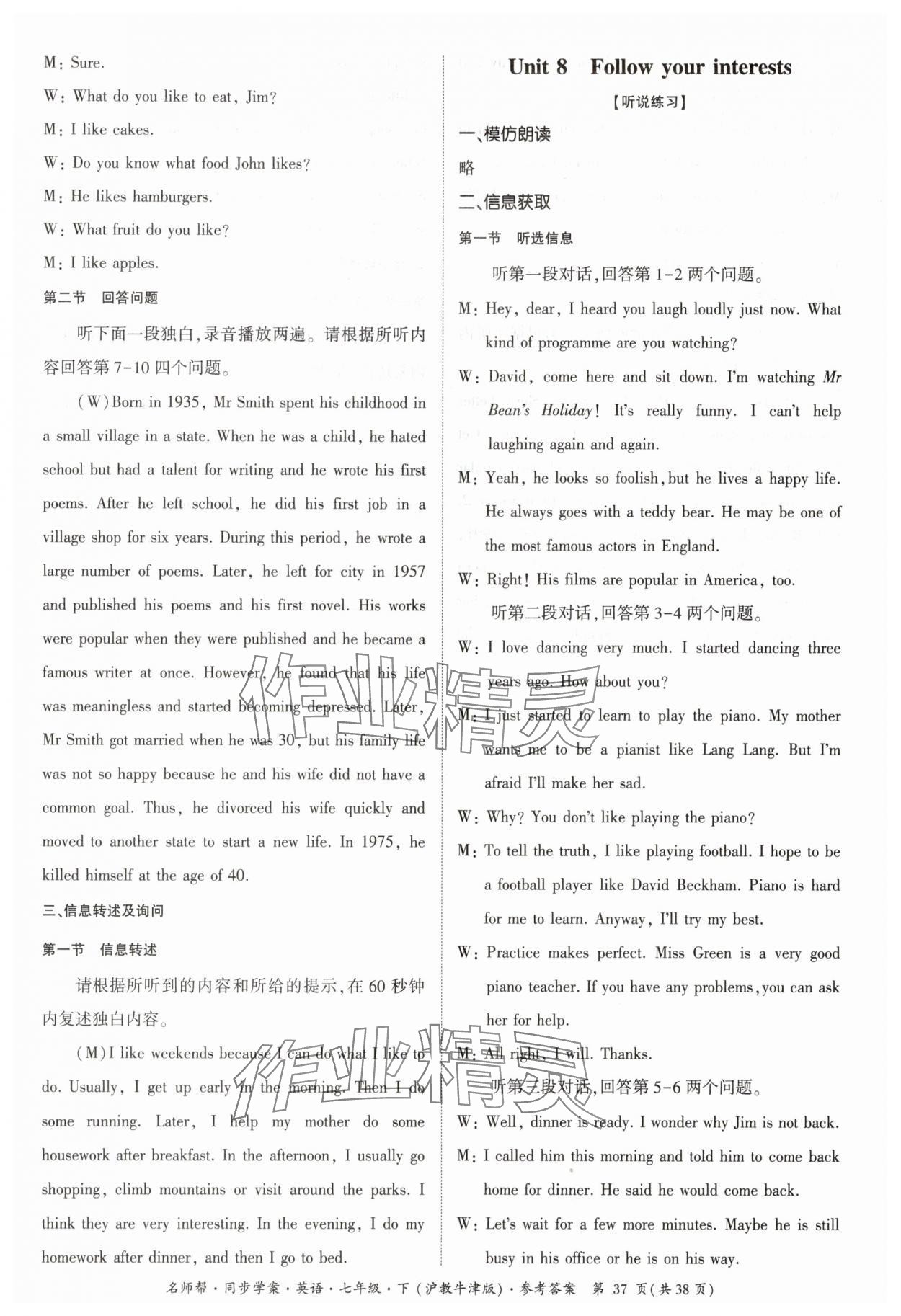注:目前有些书本章节名称可能整理的还不是很完善,但都是按照顺序排列的,请同学们按照顺序仔细查找。练习册 2025年名师帮同步学案七年级英语下册沪教版广州专版 答案主要是用来给同学们做完题方便对答案用的,请勿直接抄袭。