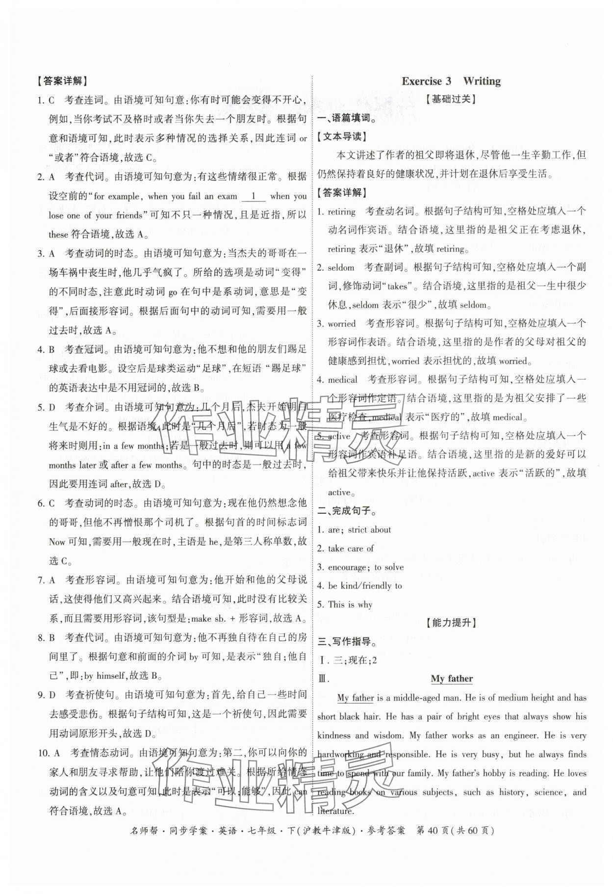 注:目前有些书本章节名称可能整理的还不是很完善,但都是按照顺序排列的,请同学们按照顺序仔细查找。练习册 2025年名师帮同步学案七年级英语下册沪教版广州专版 答案主要是用来给同学们做完题方便对答案用的,请勿直接抄袭。