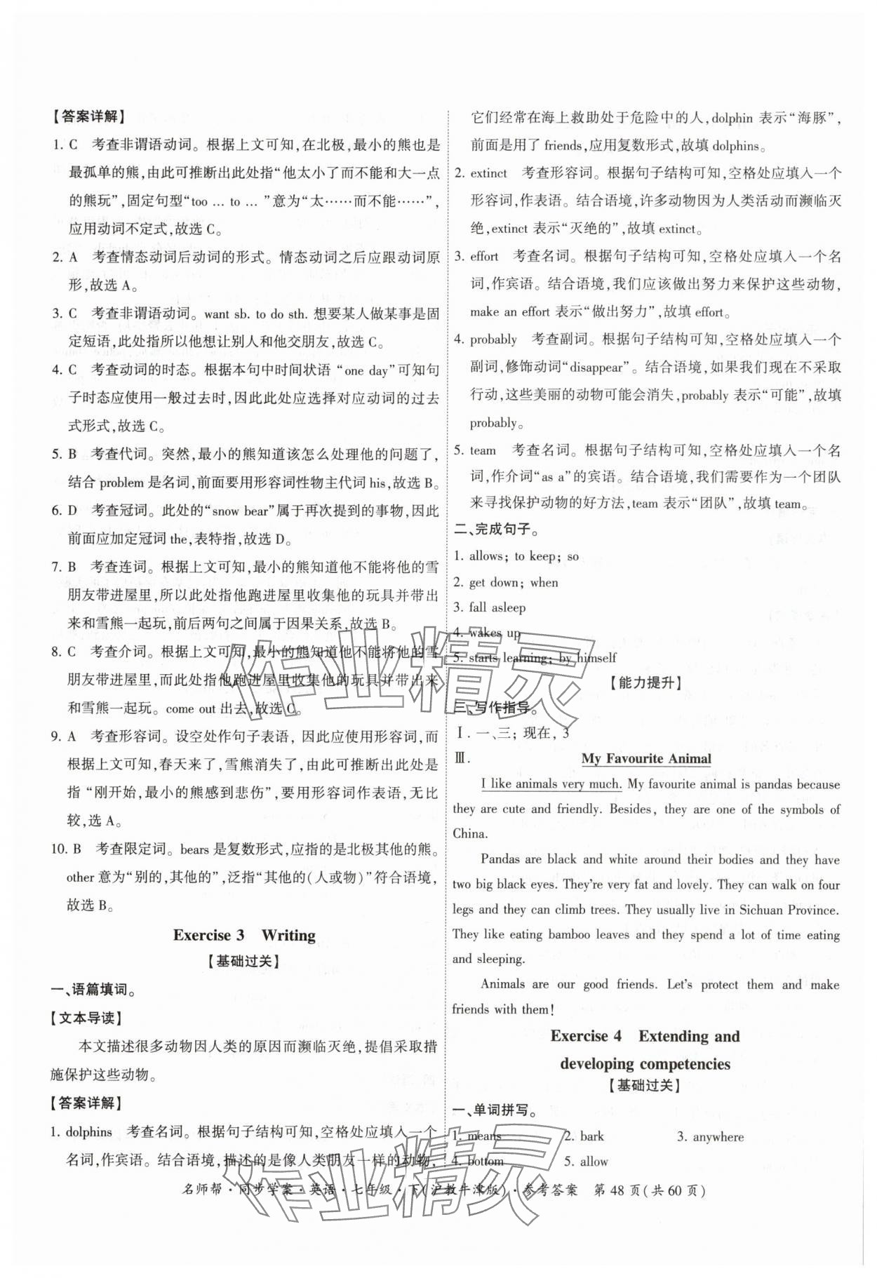 注:目前有些书本章节名称可能整理的还不是很完善,但都是按照顺序排列的,请同学们按照顺序仔细查找。练习册 2025年名师帮同步学案七年级英语下册沪教版广州专版 答案主要是用来给同学们做完题方便对答案用的,请勿直接抄袭。