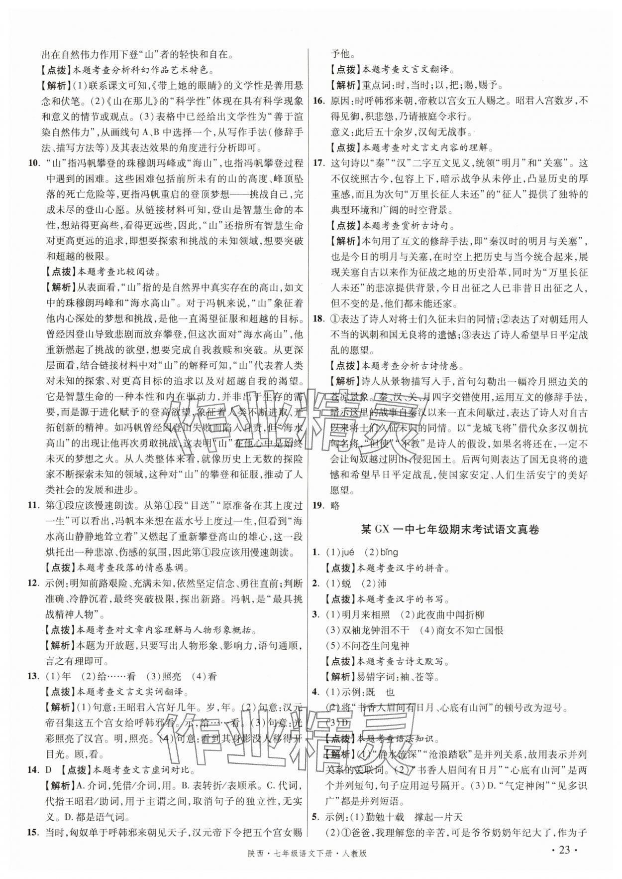 2025年初中毕业升学真题详解七年级语文下册人教版陕西专版