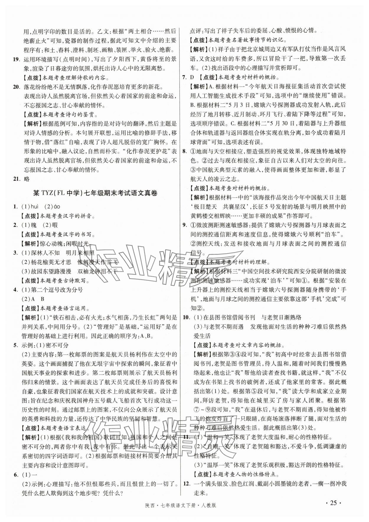 2025年初中毕业升学真题详解七年级语文下册人教版陕西专版