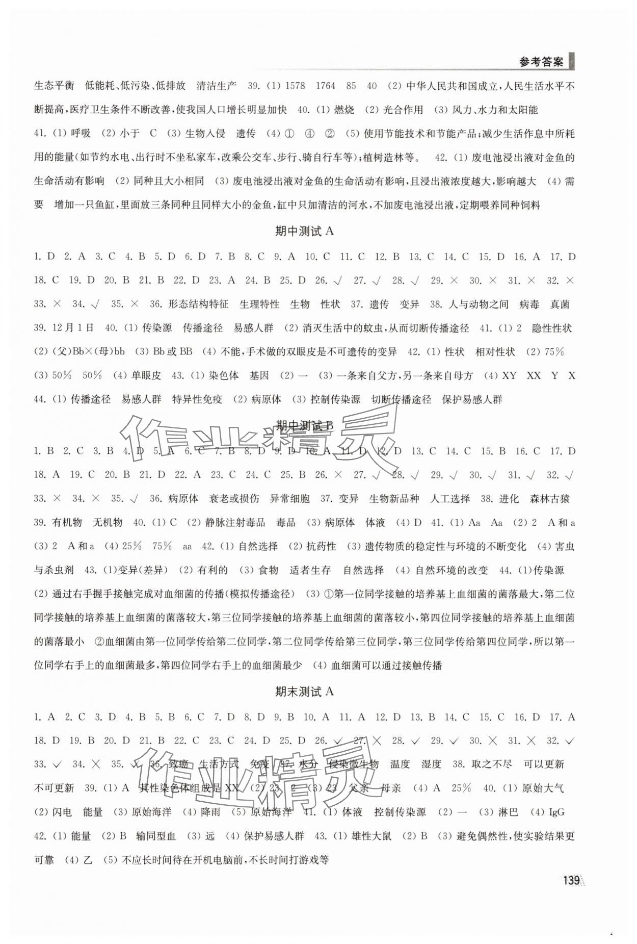 注:目前有些书本章节名称可能整理的还不是很完善,但都是按照顺序排列的,请同学们按照顺序仔细查找。练习册 2025年随堂练1加2八年级生物下册苏科版 答案主要是用来给同学们做完题方便对答案用的,请勿直接抄袭。