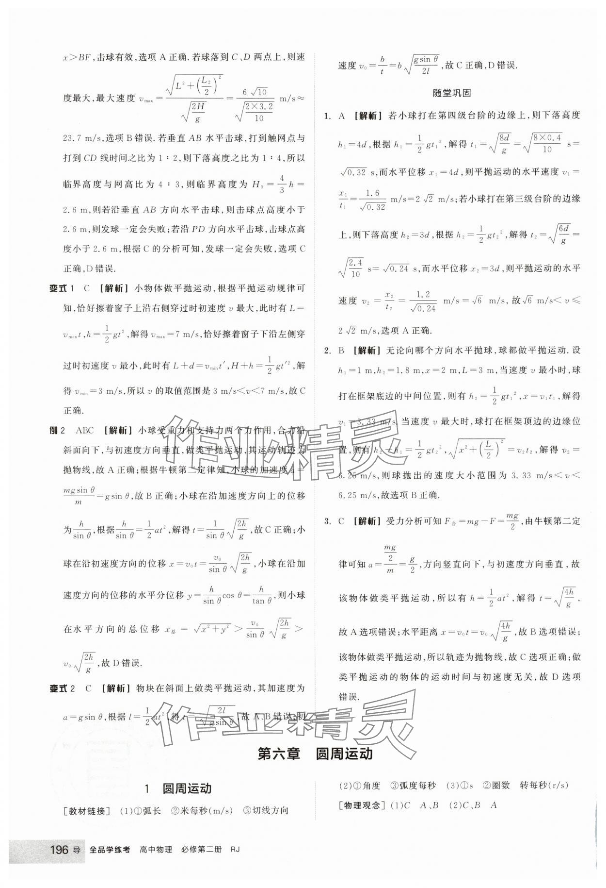 注:目前有些书本章节名称可能整理的还不是很完善,但都是按照顺序排列的,请同学们按照顺序仔细查找。练习册 2025年全品学练考高中物理必修第二册人教版 答案主要是用来给同学们做完题方便对答案用的,请勿直接抄袭。