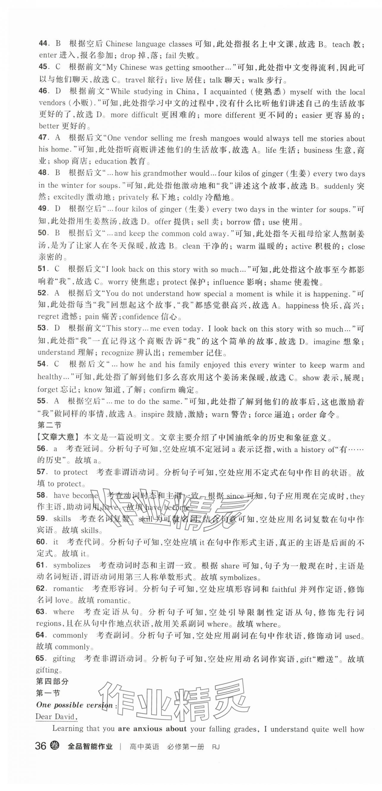 注:目前有些书本章节名称可能整理的还不是很完善,但都是按照顺序排列的,请同学们按照顺序仔细查找。练习册 2024年全品智能作业高中英语必修第一册人教版 答案主要是用来给同学们做完题方便对答案用的,请勿直接抄袭。