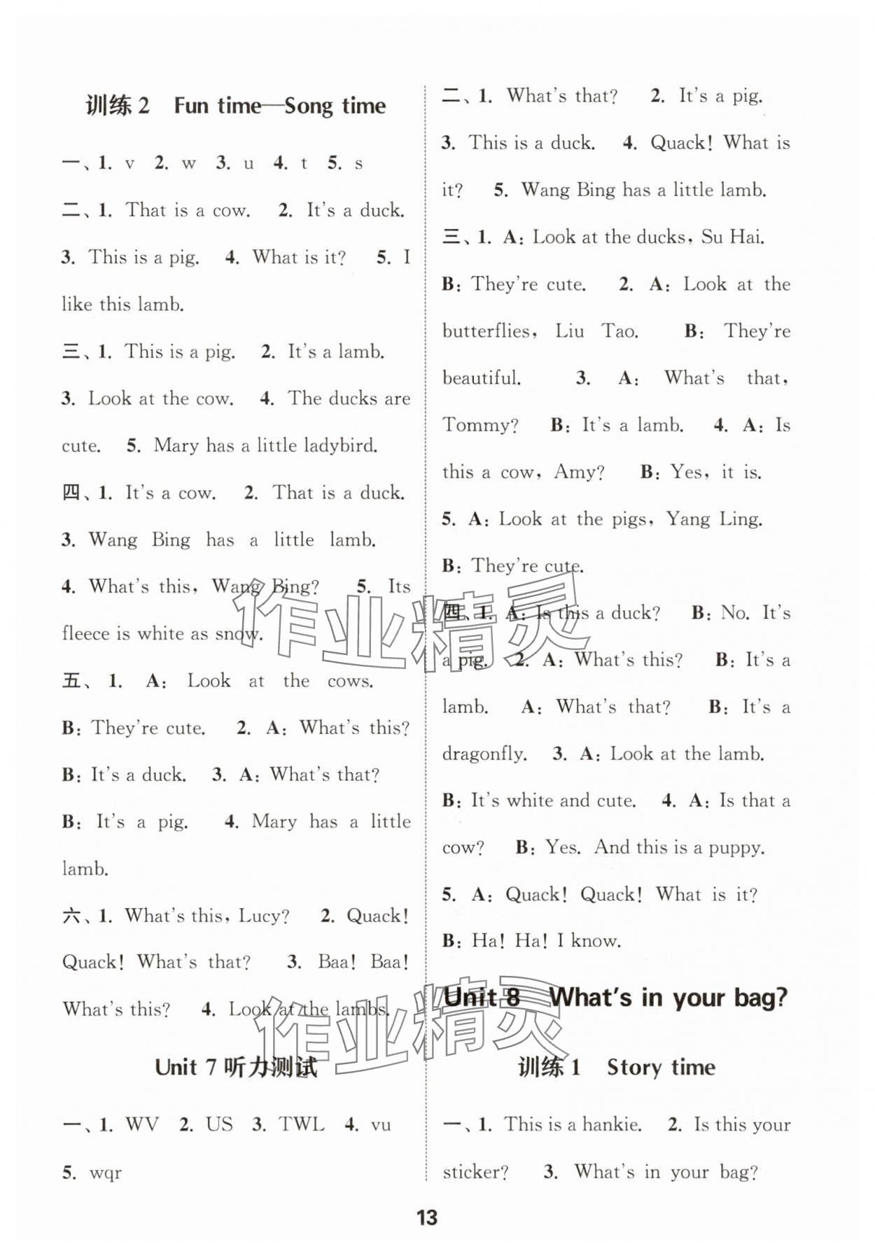 注:目前有些书本章节名称可能整理的还不是很完善,但都是按照顺序排列的,请同学们按照顺序仔细查找。练习册 2025年通城学典小学英语听力能手一年级下册译林版 答案主要是用来给同学们做完题方便对答案用的,请勿直接抄袭。