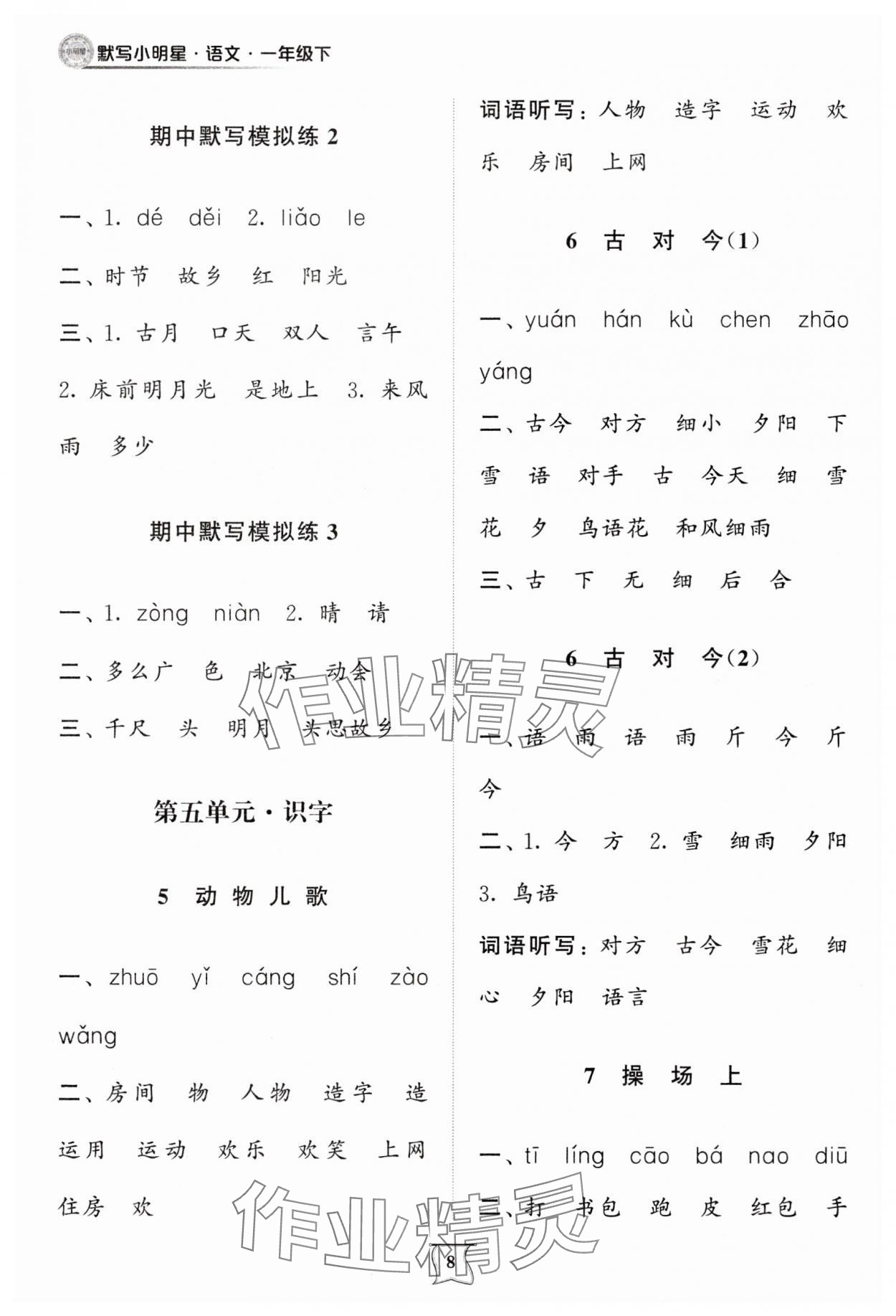 注:目前有些书本章节名称可能整理的还不是很完善,但都是按照顺序排列的,请同学们按照顺序仔细查找。练习册 2025年默写小明星一年级语文下册人教版 答案主要是用来给同学们做完题方便对答案用的,请勿直接抄袭。