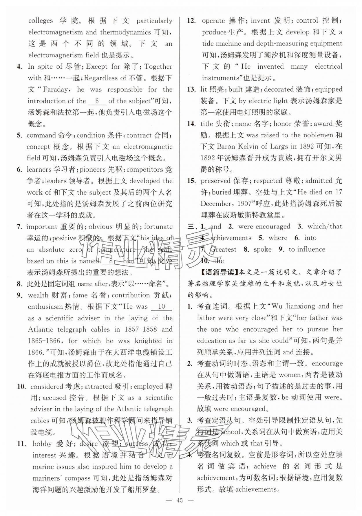 注:目前有些书本章节名称可能整理的还不是很完善,但都是按照顺序排列的,请同学们按照顺序仔细查找。练习册 2025年南通小题高中英语必修第三册译林版 答案主要是用来给同学们做完题方便对答案用的,请勿直接抄袭。
