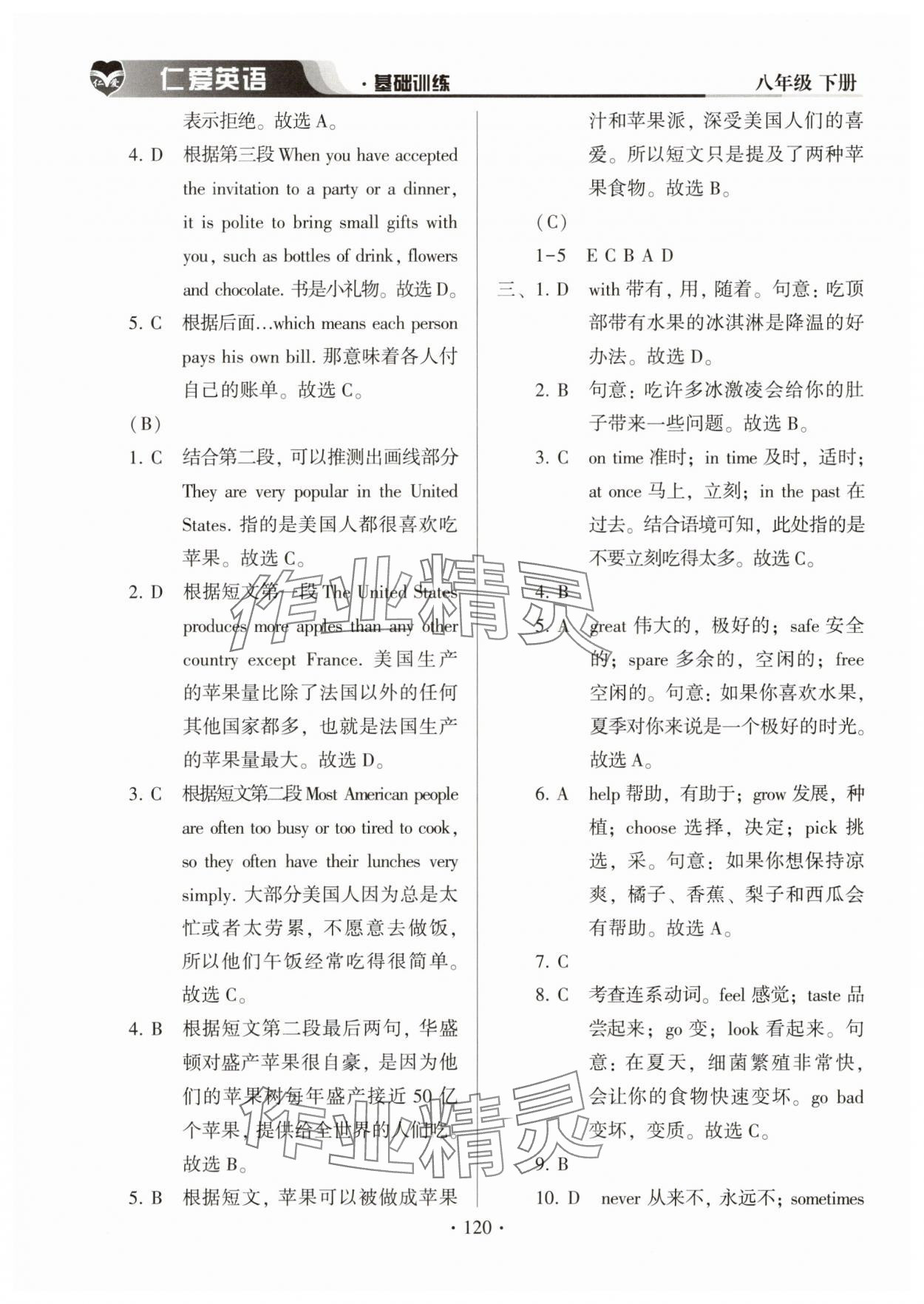 注:目前有些书本章节名称可能整理的还不是很完善,但都是按照顺序排列的,请同学们按照顺序仔细查找。练习册 2025年仁爱英语基础训练八年级下册仁爱版 答案主要是用来给同学们做完题方便对答案用的,请勿直接抄袭。