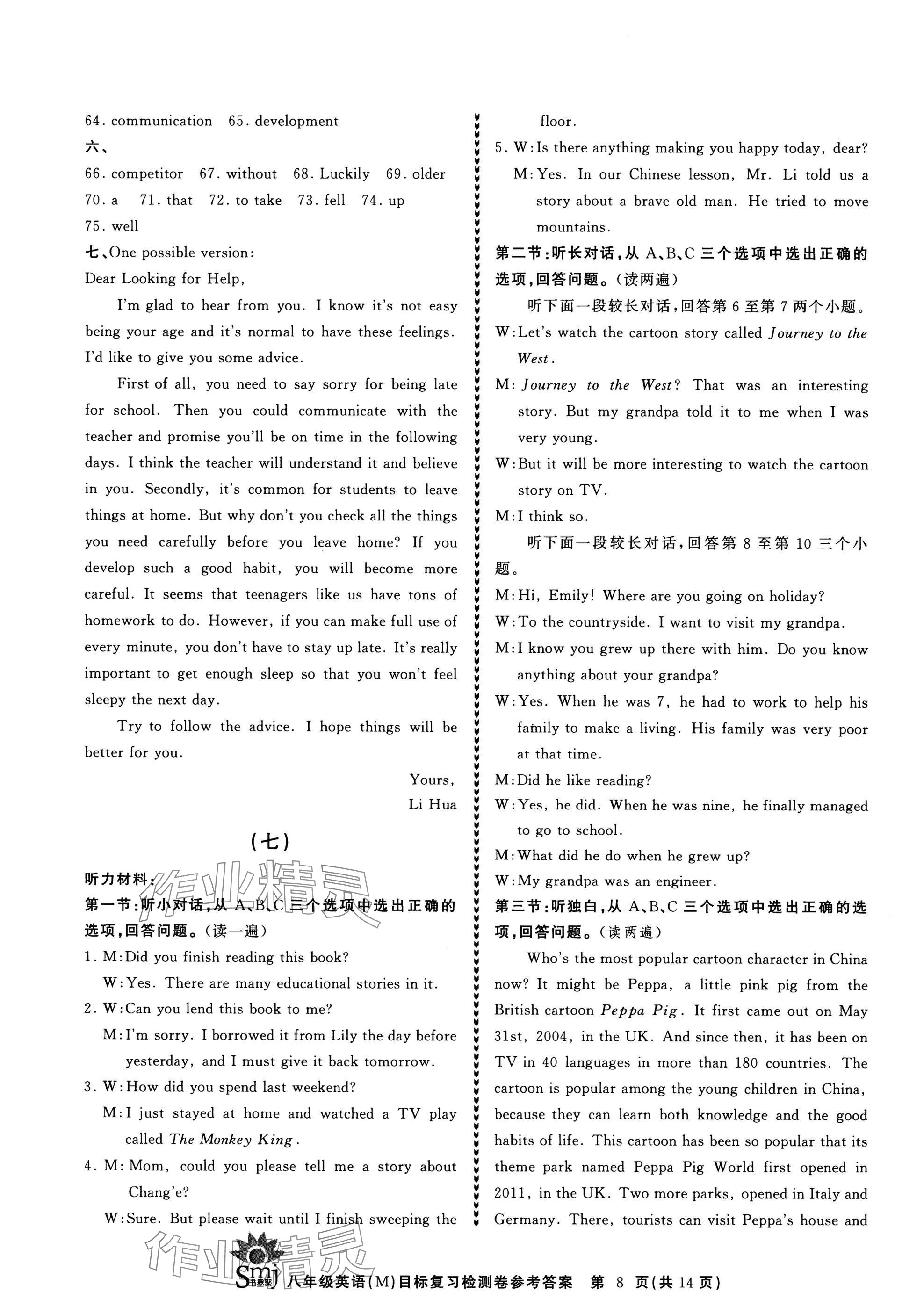 注:目前有些书本章节名称可能整理的还不是很完善,但都是按照顺序排列的,请同学们按照顺序仔细查找。练习册 2025年目标复习检测卷八年级英语下册人教版 答案主要是用来给同学们做完题方便对答案用的,请勿直接抄袭。