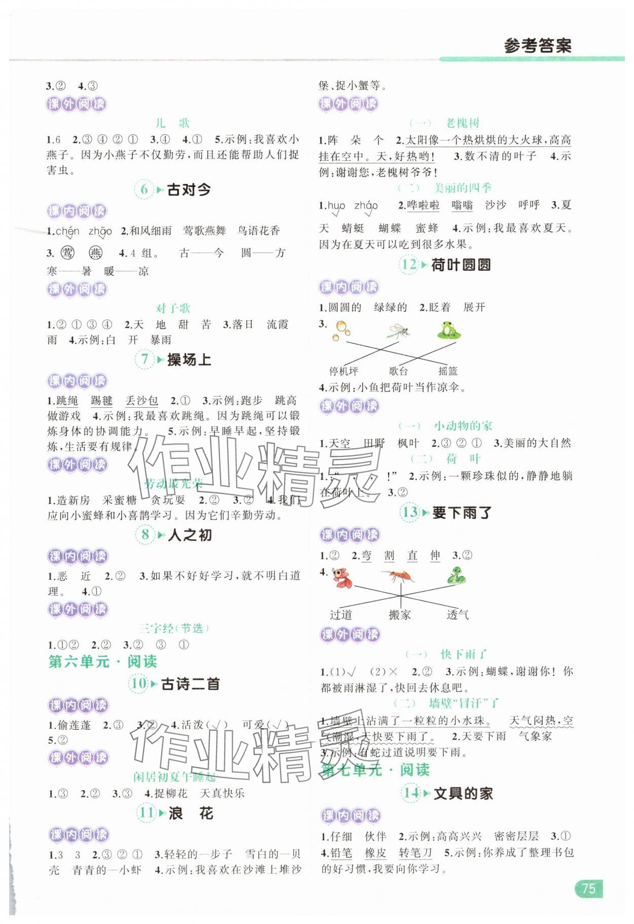 注:目前有些书本章节名称可能整理的还不是很完善,但都是按照顺序排列的,请同学们按照顺序仔细查找。练习册 2025年小学语文同步阅读理解强化训练一年级下册人教版 答案主要是用来给同学们做完题方便对答案用的,请勿直接抄袭。