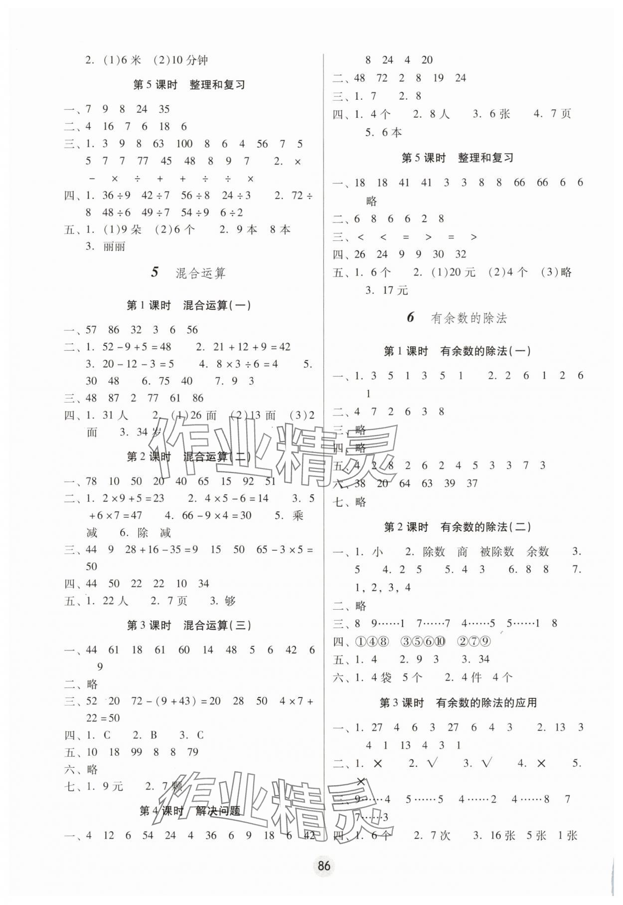 注:目前有些书本章节名称可能整理的还不是很完善,但都是按照顺序排列的,请同学们按照顺序仔细查找。练习册 2025年课课练云南师大附小全优作业二年级数学下册人教版 答案主要是用来给同学们做完题方便对答案用的,请勿直接抄袭。