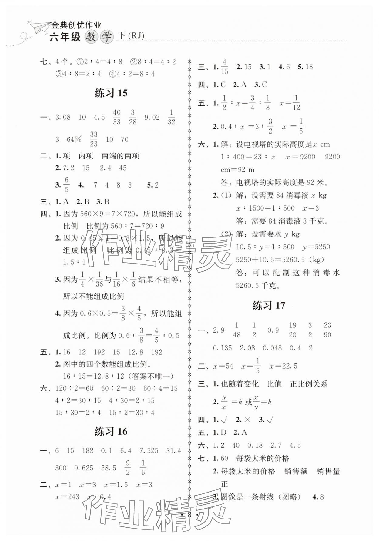 注:目前有些书本章节名称可能整理的还不是很完善,但都是按照顺序排列的,请同学们按照顺序仔细查找。练习册 2025年金典创优作业六年级数学下册人教版 答案主要是用来给同学们做完题方便对答案用的,请勿直接抄袭。