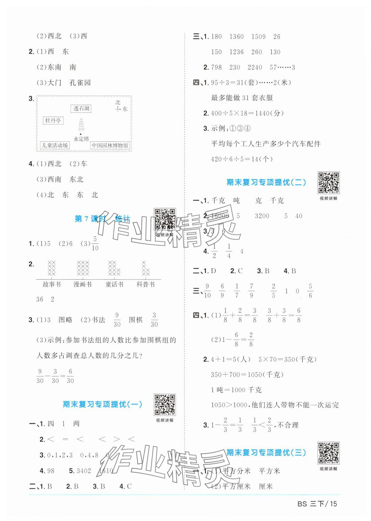 注:目前有些书本章节名称可能整理的还不是很完善,但都是按照顺序排列的,请同学们按照顺序仔细查找。练习册 2025年阳光同学课时提优训练三年级数学下册北师大版 答案主要是用来给同学们做完题方便对答案用的,请勿直接抄袭。