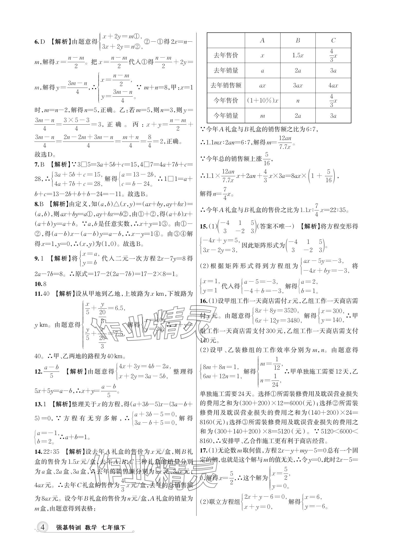 注:目前有些书本章节名称可能整理的还不是很完善,但都是按照顺序排列的,请同学们按照顺序仔细查找。练习册 2025年巧学提优七年级数学下册浙教版 答案主要是用来给同学们做完题方便对答案用的,请勿直接抄袭。