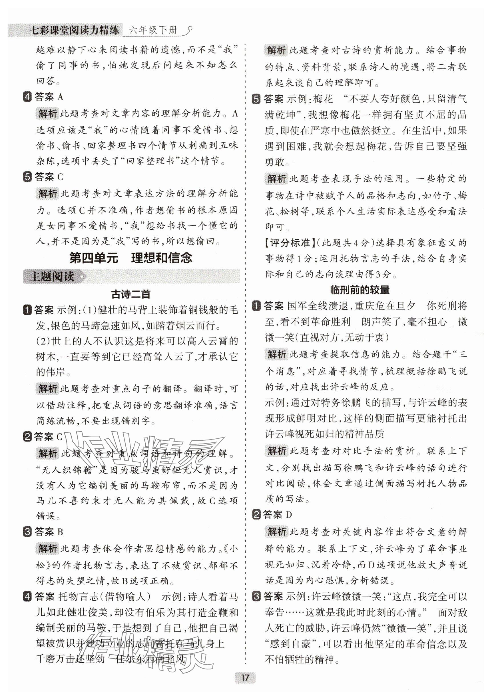 注:目前有些书本章节名称可能整理的还不是很完善,但都是按照顺序排列的,请同学们按照顺序仔细查找。练习册 2025年阅读力精练六年级语文下册人教版 答案主要是用来给同学们做完题方便对答案用的,请勿直接抄袭。