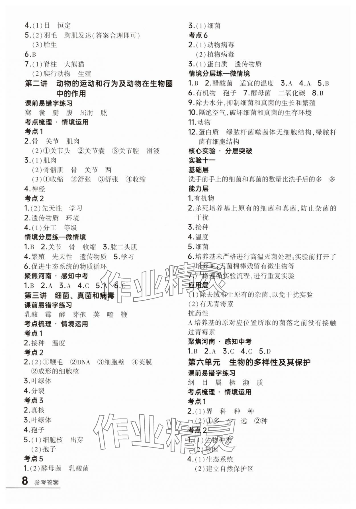 注:目前有些书本章节名称可能整理的还不是很完善,但都是按照顺序排列的,请同学们按照顺序仔细查找。练习册 2025年中考通生物河南专版 答案主要是用来给同学们做完题方便对答案用的,请勿直接抄袭。