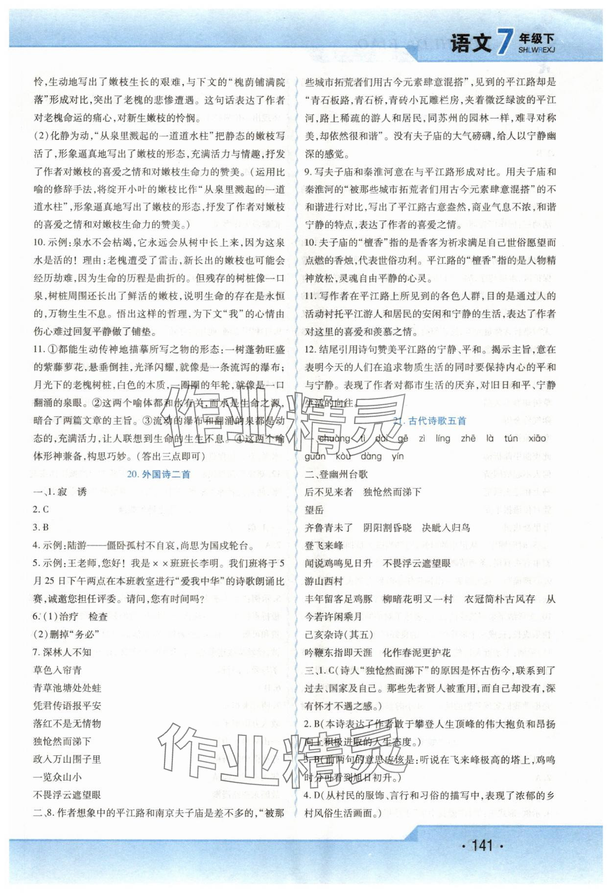注:目前有些书本章节名称可能整理的还不是很完善,但都是按照顺序排列的,请同学们按照顺序仔细查找。练习册 2025年精析巧练七年级语文下册人教版 答案主要是用来给同学们做完题方便对答案用的,请勿直接抄袭。