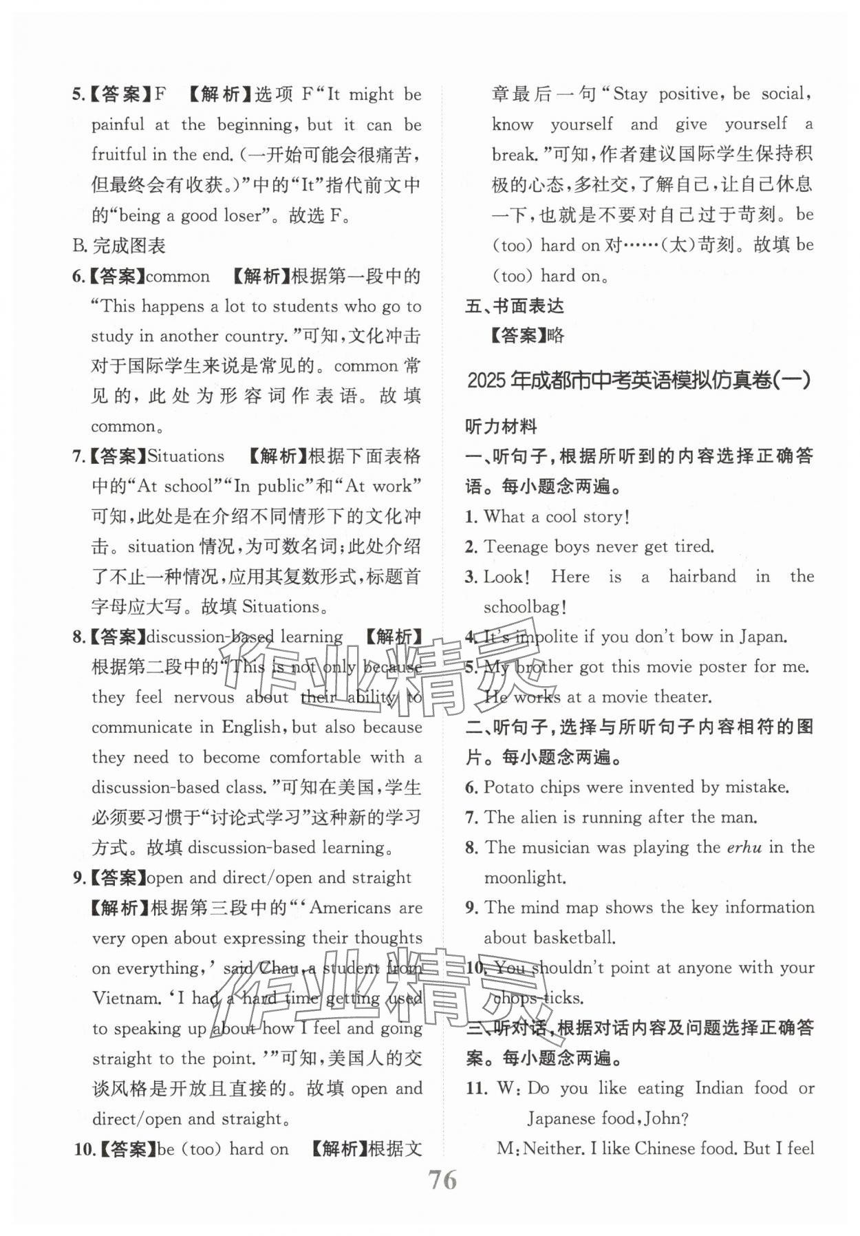 注:目前有些书本章节名称可能整理的还不是很完善,但都是按照顺序排列的,请同学们按照顺序仔细查找。练习册 2025年金卷1号中考模拟仿真卷英语中考成都专版 答案主要是用来给同学们做完题方便对答案用的,请勿直接抄袭。