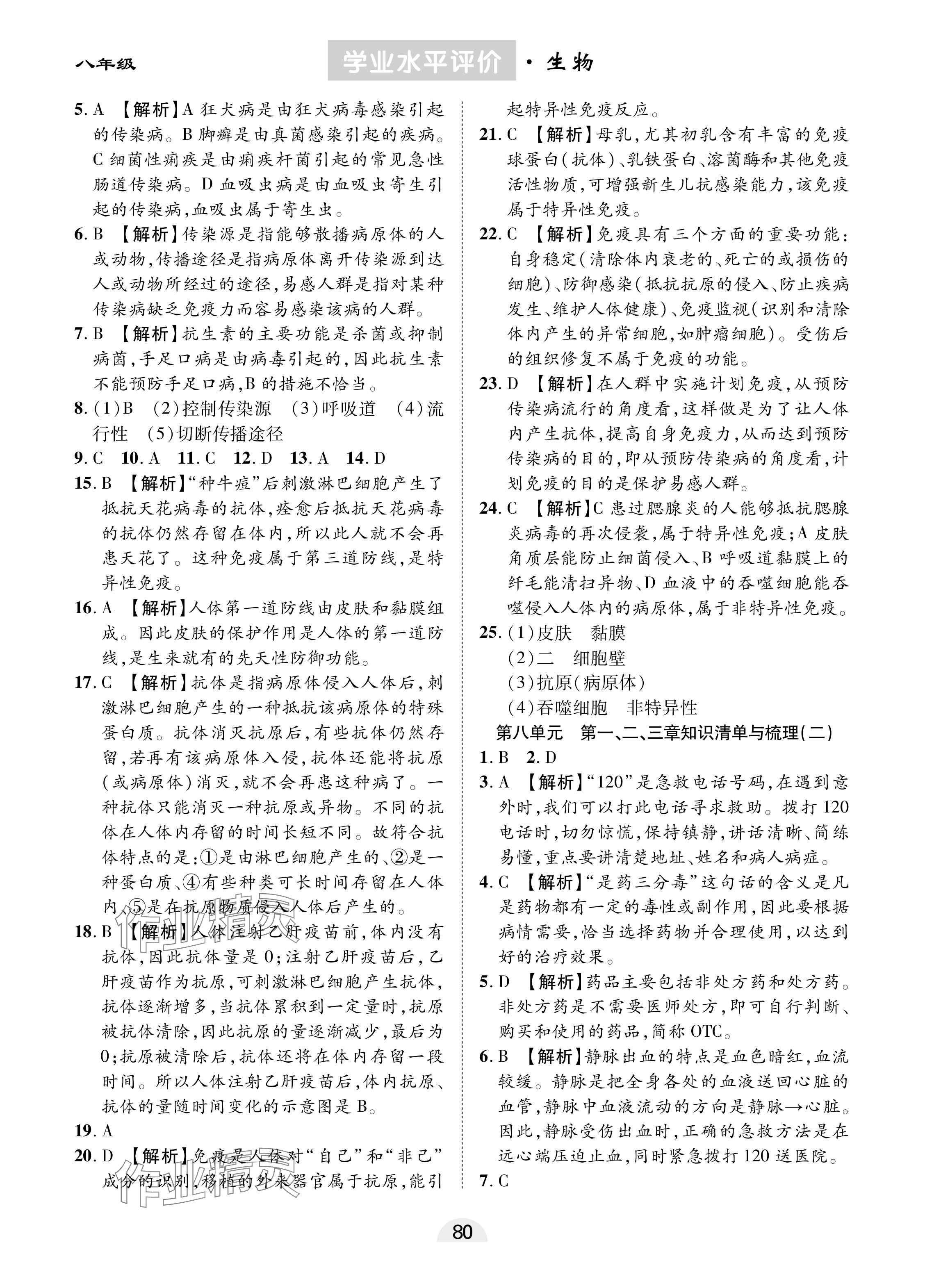 注:目前有些书本章节名称可能整理的还不是很完善,但都是按照顺序排列的,请同学们按照顺序仔细查找。练习册 2025年学业水平评价同步检测卷八年级生物下册人教版 答案主要是用来给同学们做完题方便对答案用的,请勿直接抄袭。